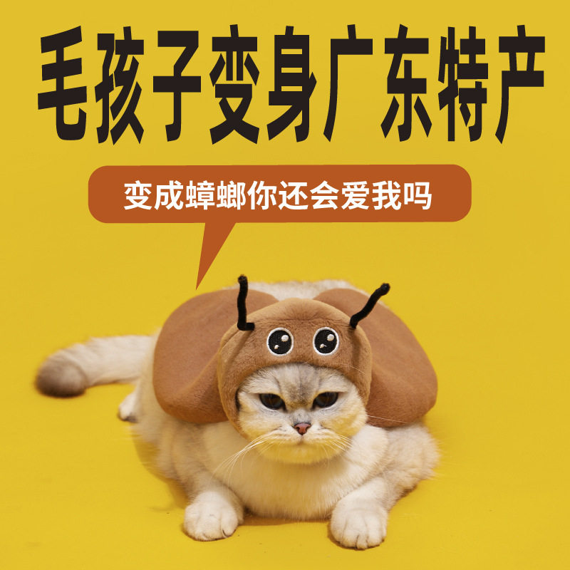 📚 纯情猫咪蟑螂头套可爱小强蟑螂cos衣服搞怪毛孩子可调节披风网红