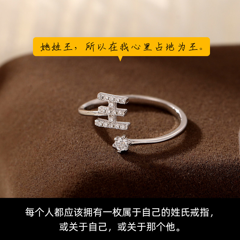 📚 百家姓姓氏纯银戒指女小众独特2026新款爆款闺蜜轻奢高级感食指戒