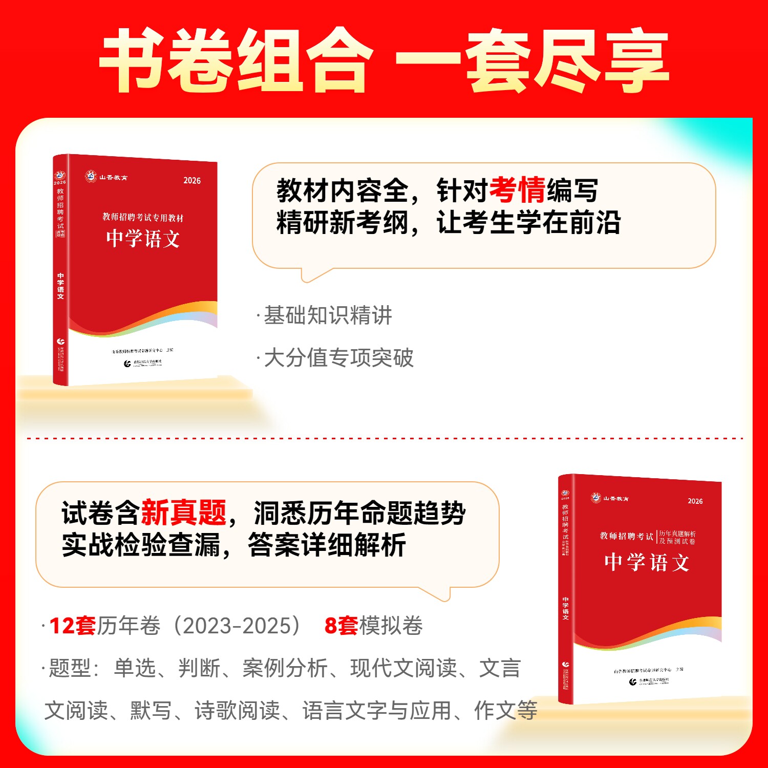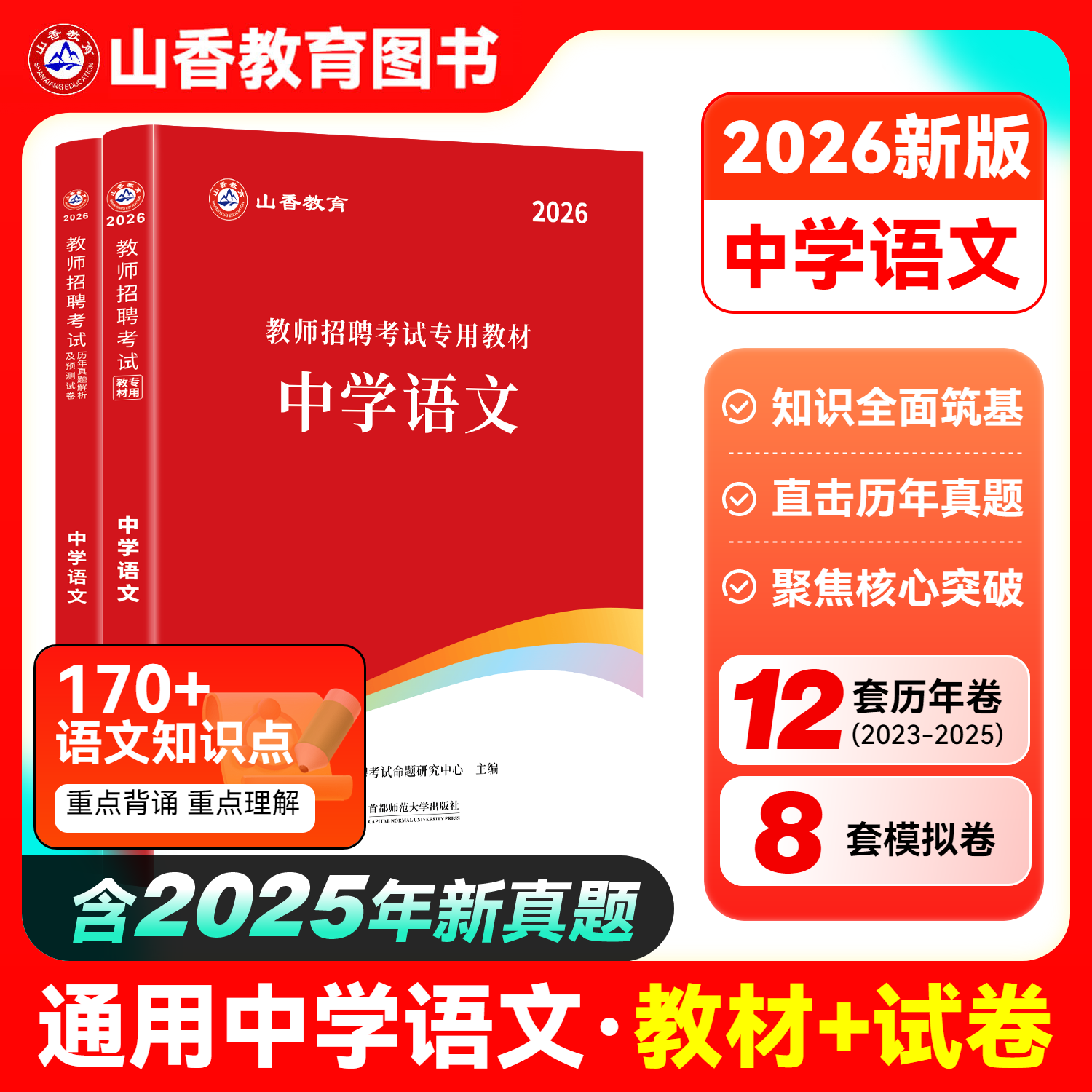 📚 山香中学语文2026教师招聘考试中学语文学科教材历年真题解析及押题试卷 教师考编编制中学初中河南河北安徽江苏山东四川福建浙江