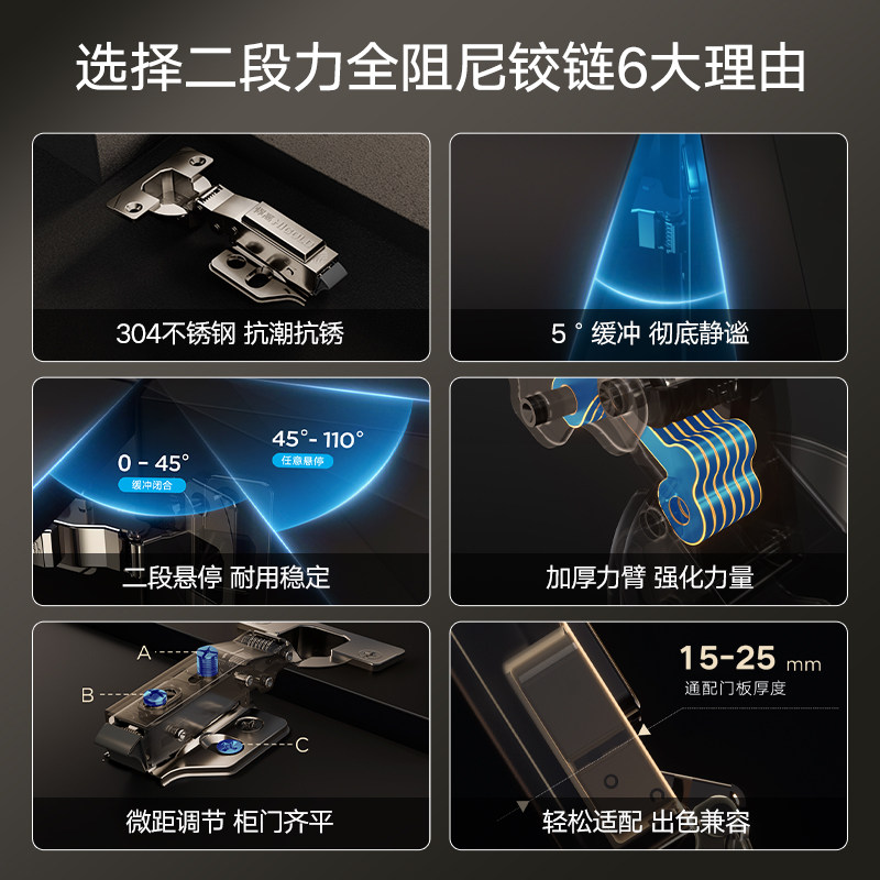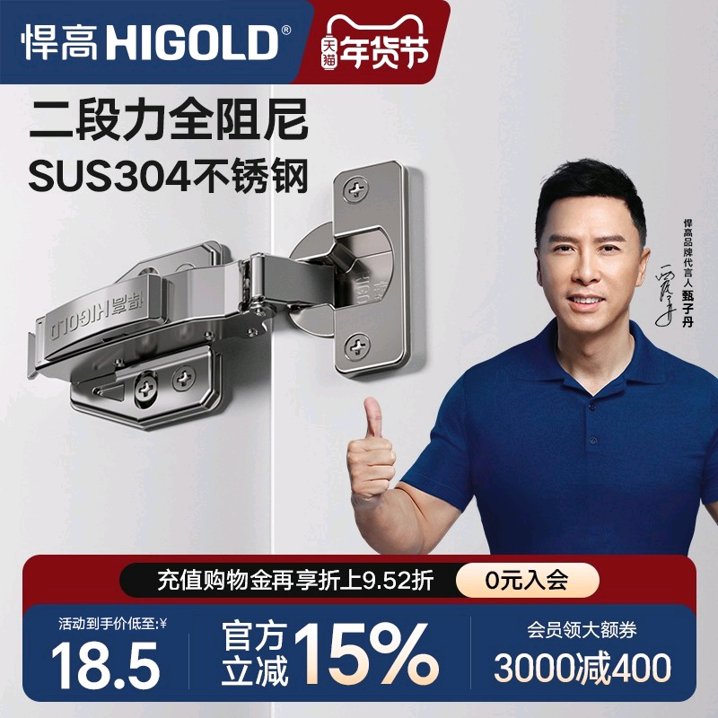 📚 HIGOLD/悍高 二段力铰链橱柜衣柜门厨房卧室合页全阻尼304铰链