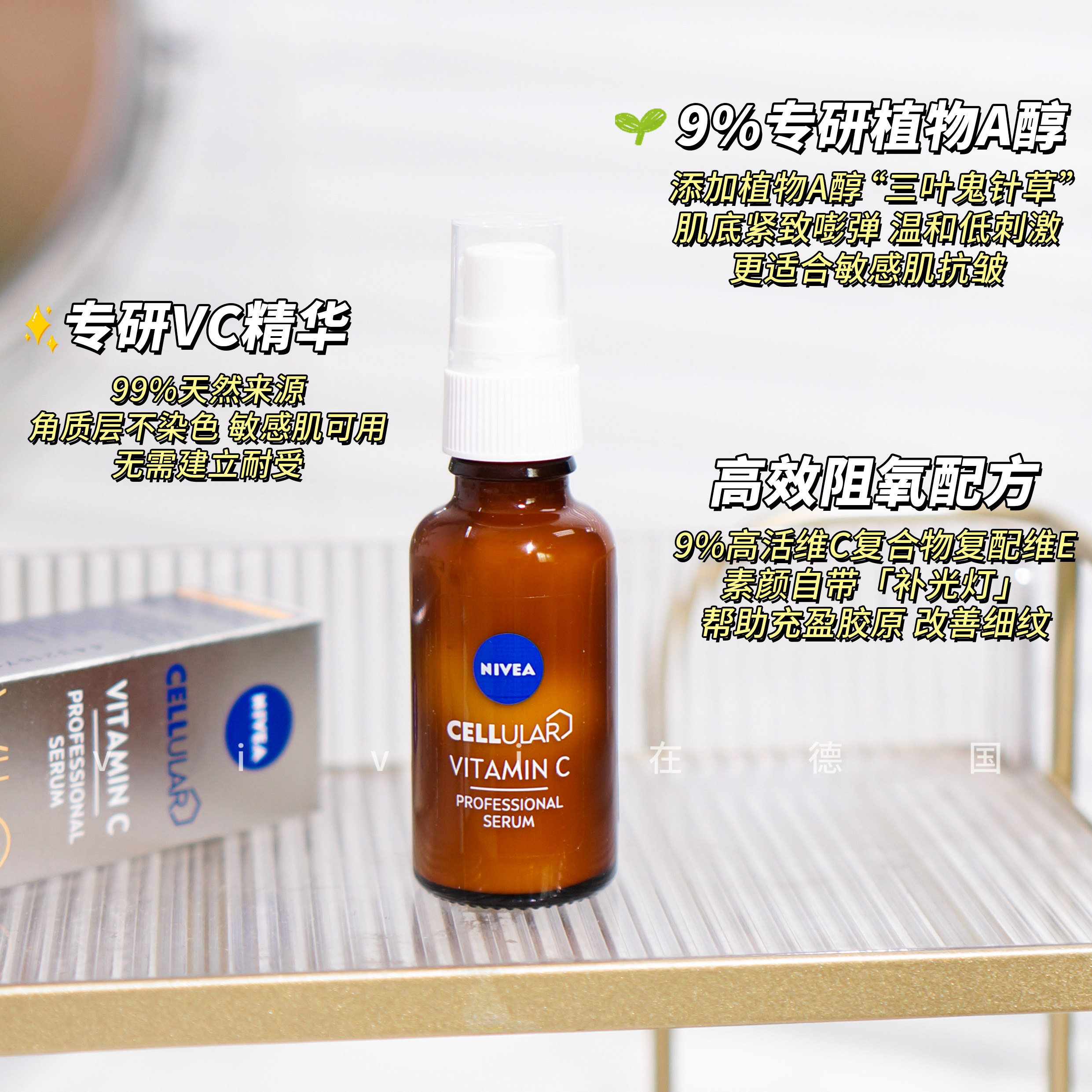 📚 Nivea妮维雅 vc精华CELLULAR 9%早C晚A安瓶精华抗氧化提亮a醇30ml
