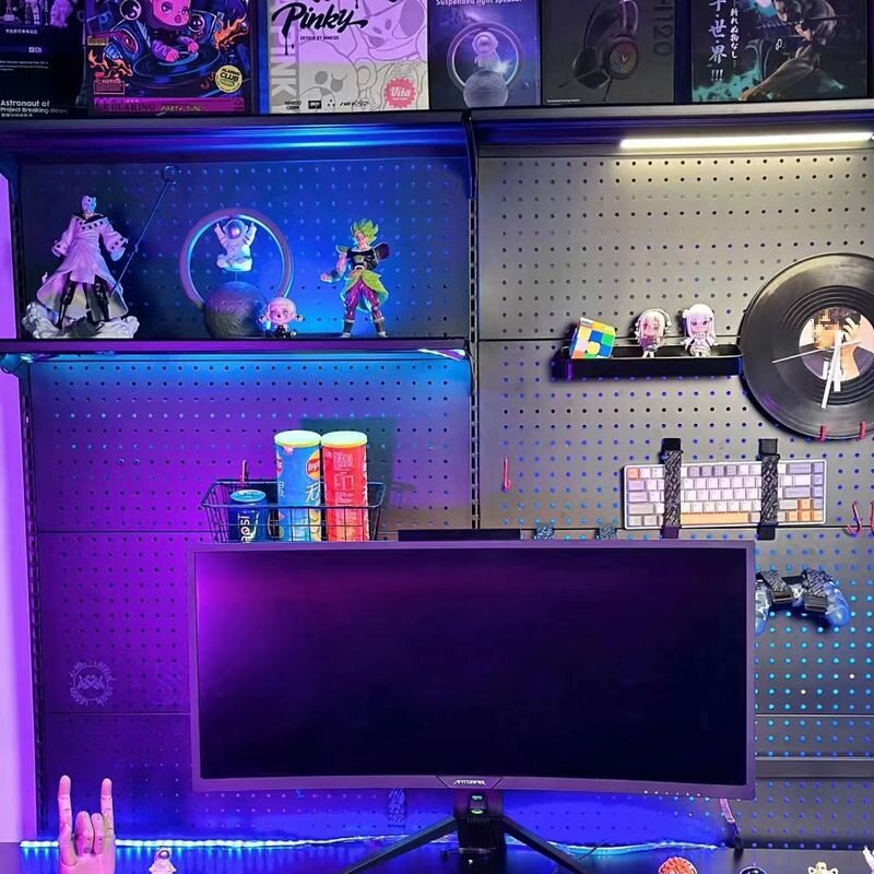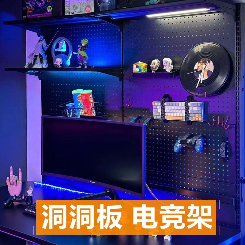 📚 网红少女电竞房间装饰布置桌搭书房书架桌子洞洞板五金落地置新款