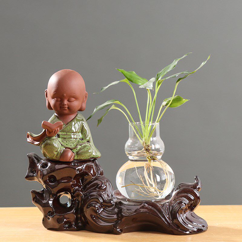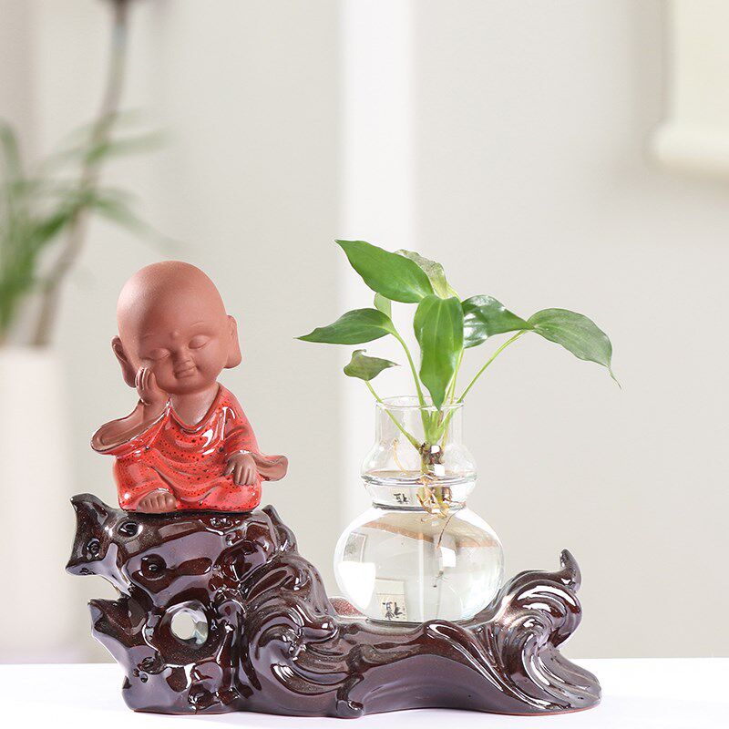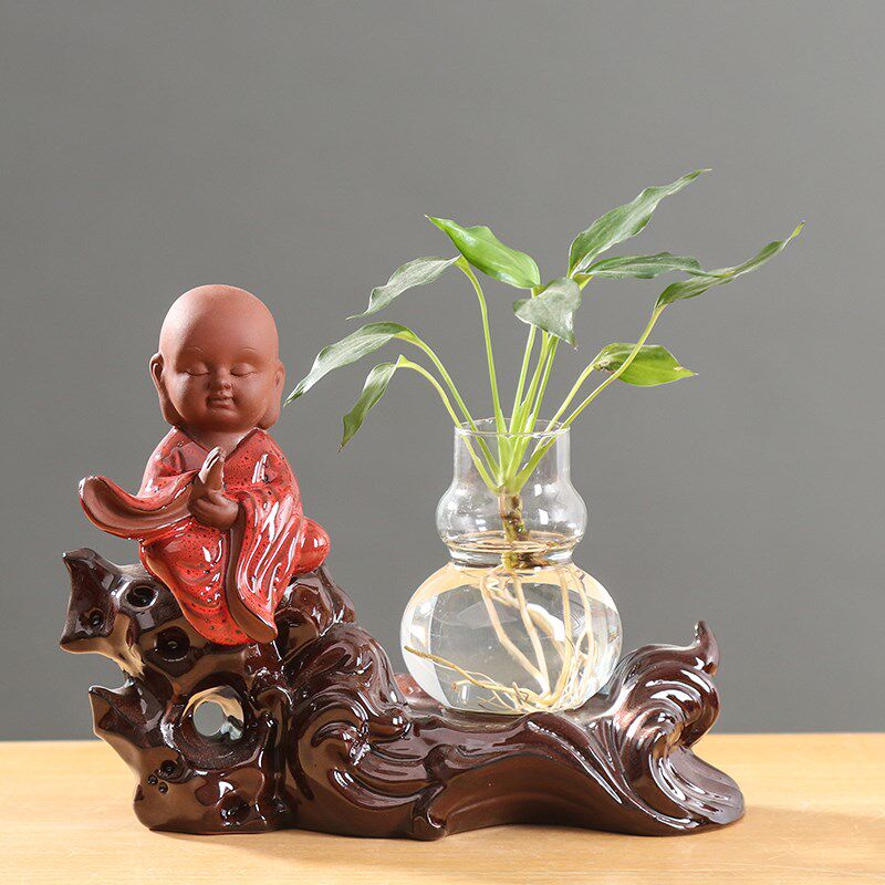📚 绿萝红掌水培花瓶玻璃透明创意个性水养鲜花器皿绿植花盆陶瓷摆件