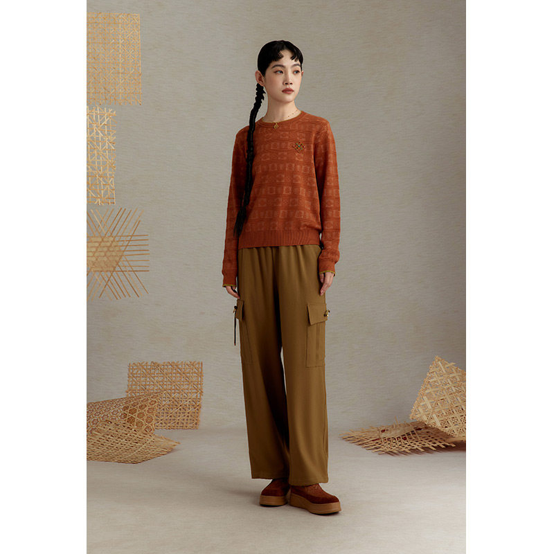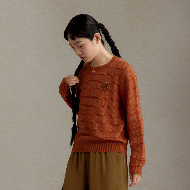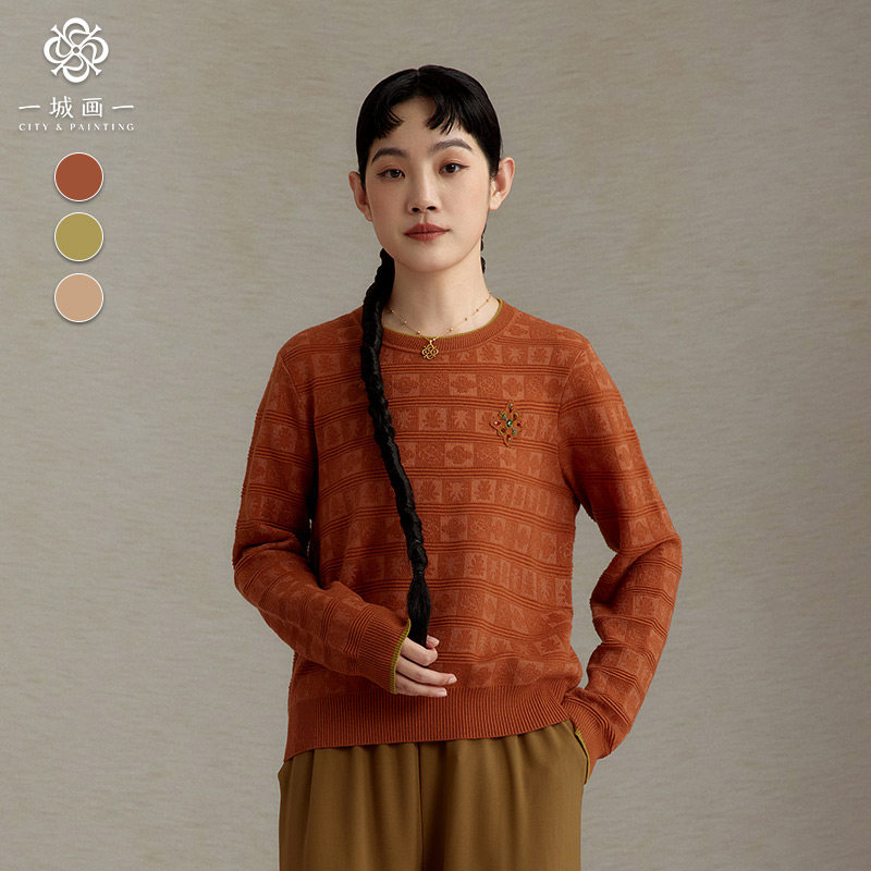 📚 一城画一遮肚显瘦文艺复古圆领宽松长袖百搭时尚风短款套头毛衫女