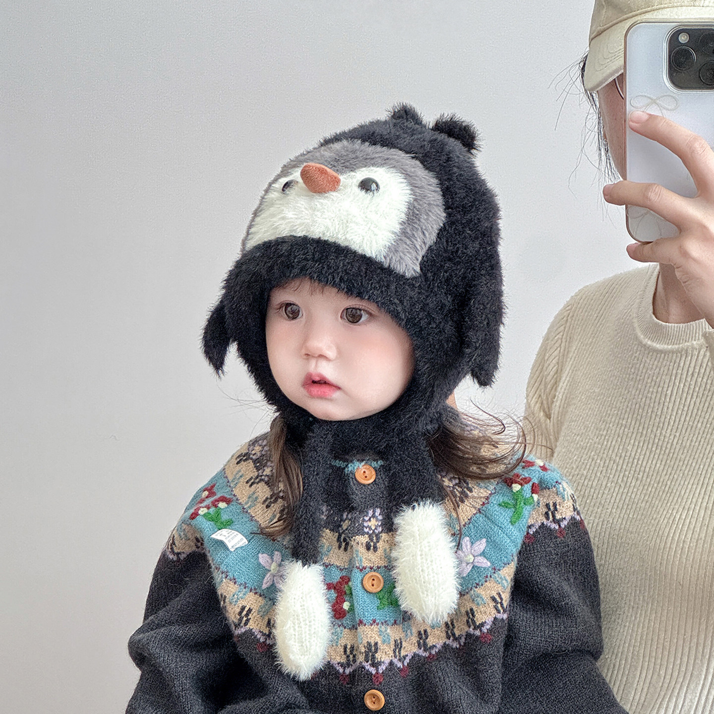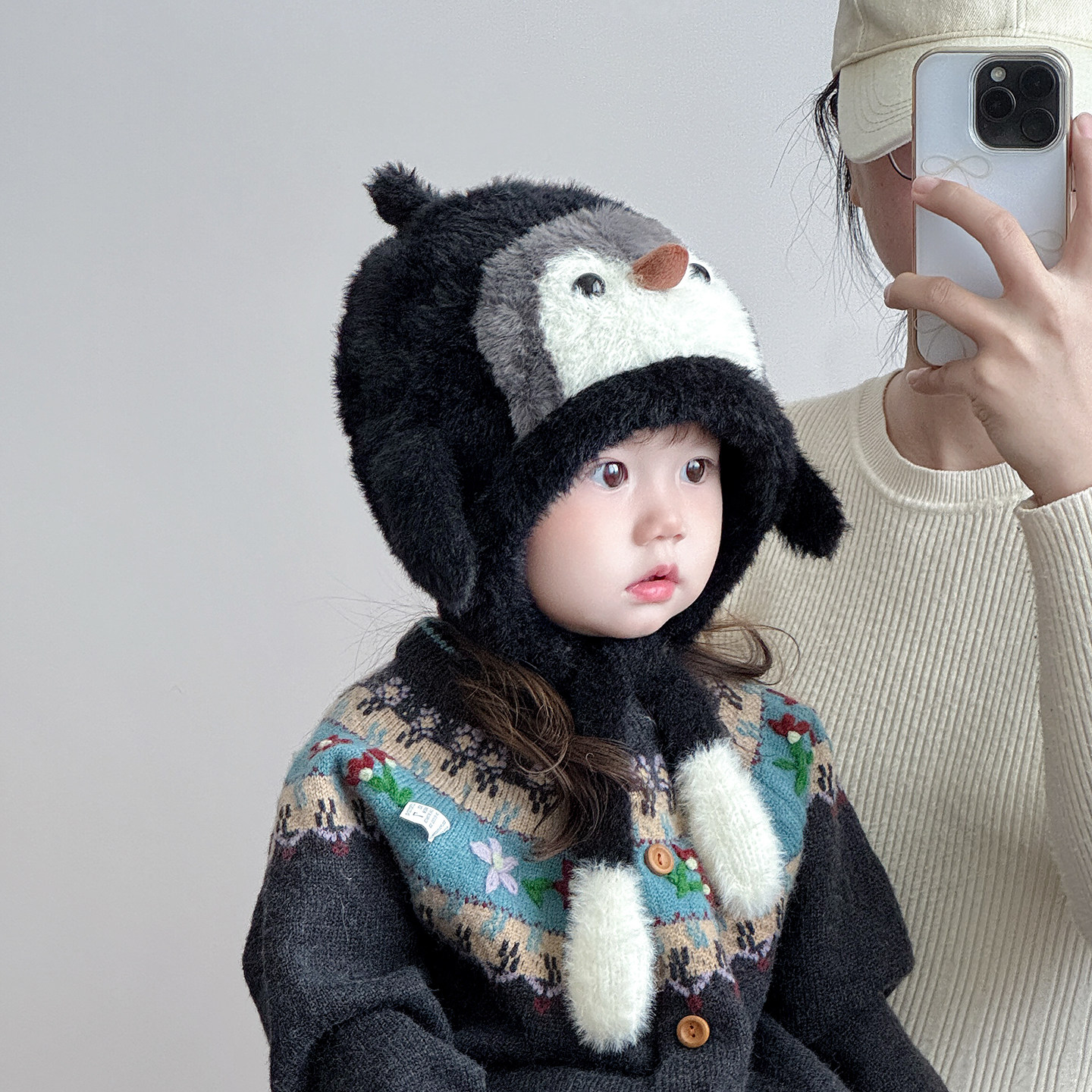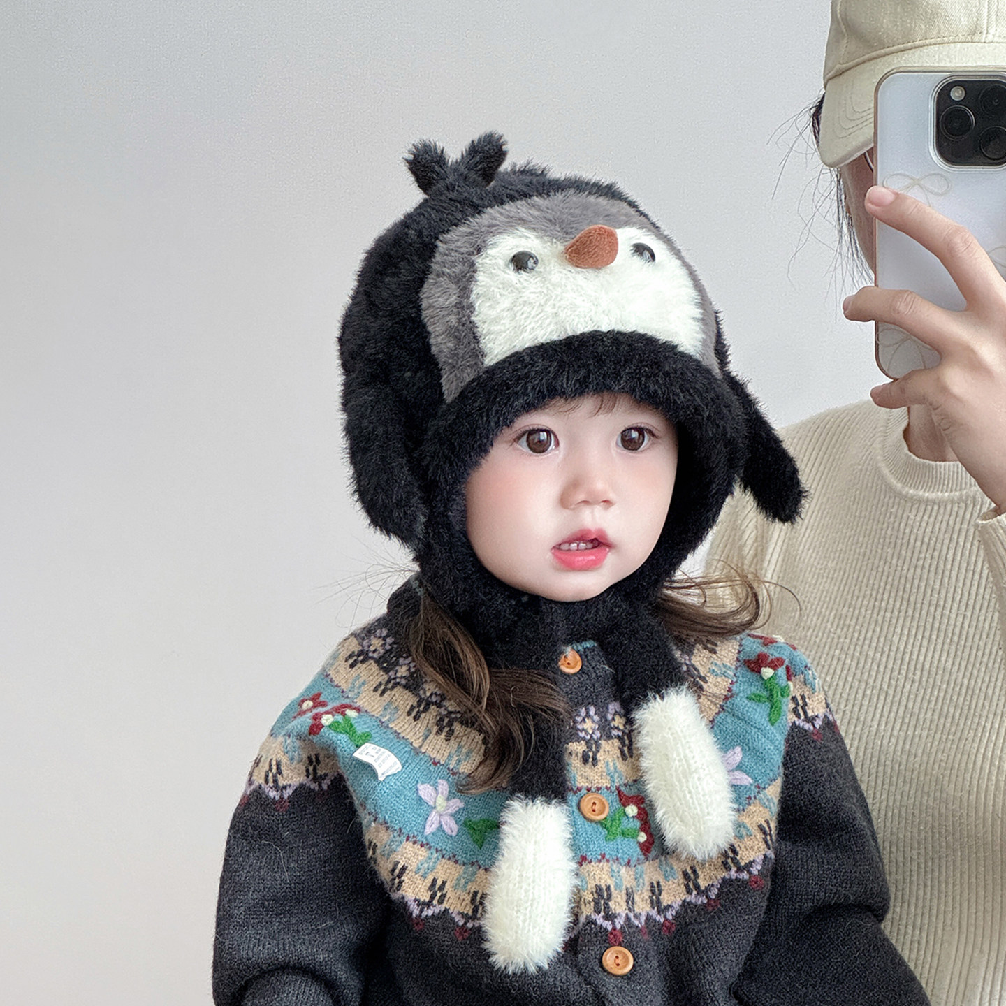 📚 可爱企鹅帽儿童帽子冬天毛绒帽男女宝宝加厚保暖防风护耳帽雷锋帽