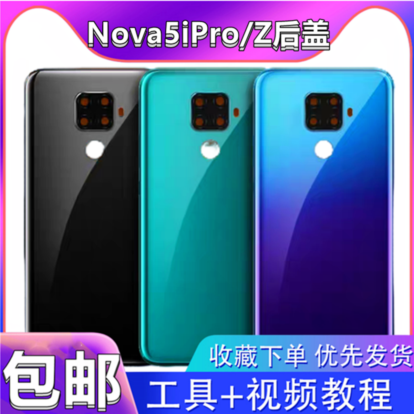 📚 颖彤后盖适用华为Nova5ipro玻璃后盖 华为nova5z电池盖手机后壳