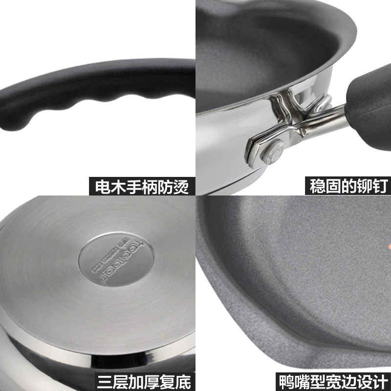 📚 美思工房不锈钢牛排煎锅平底锅具不易粘少油烟煎饼煎蛋电磁炉通用