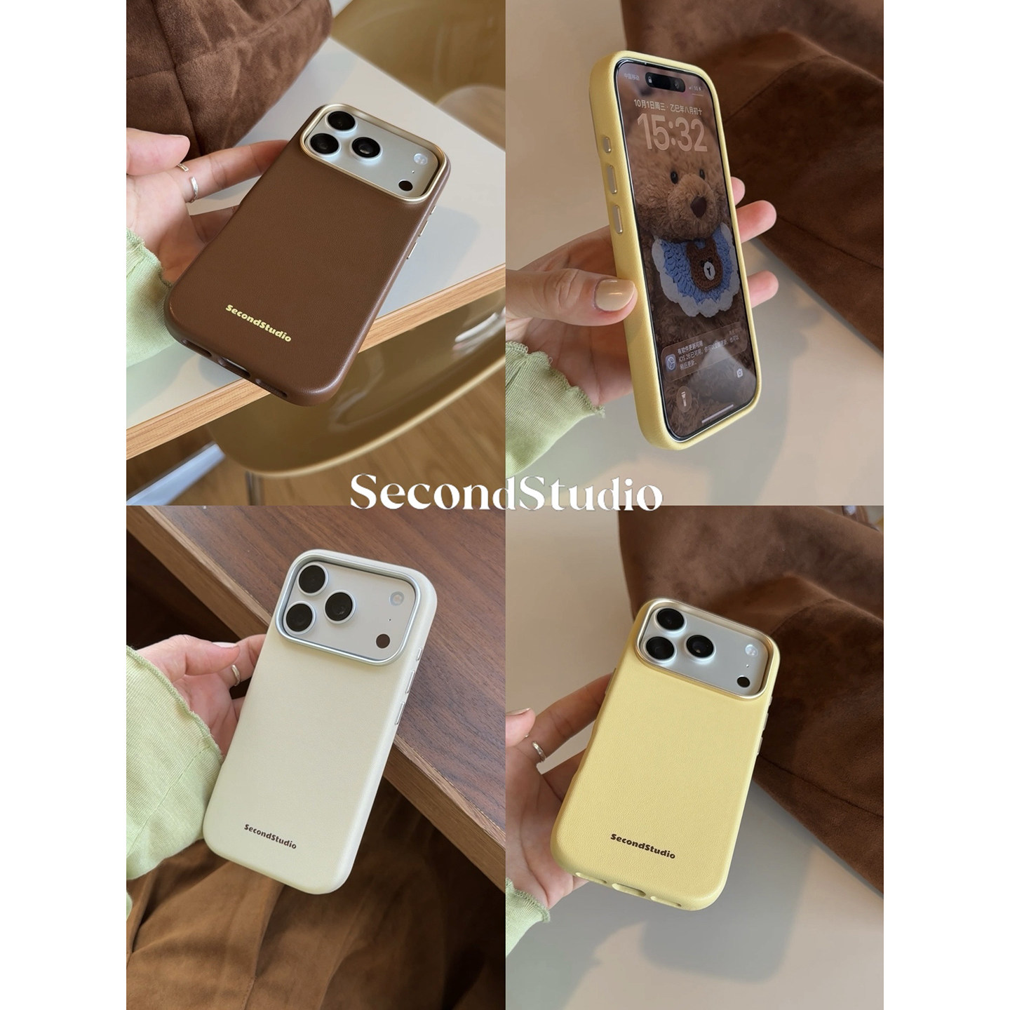 📚 原创小众简约纯色适用iphone16promax皮质手机壳苹果17全包保护壳手工皮革14创意撞色英文15promax