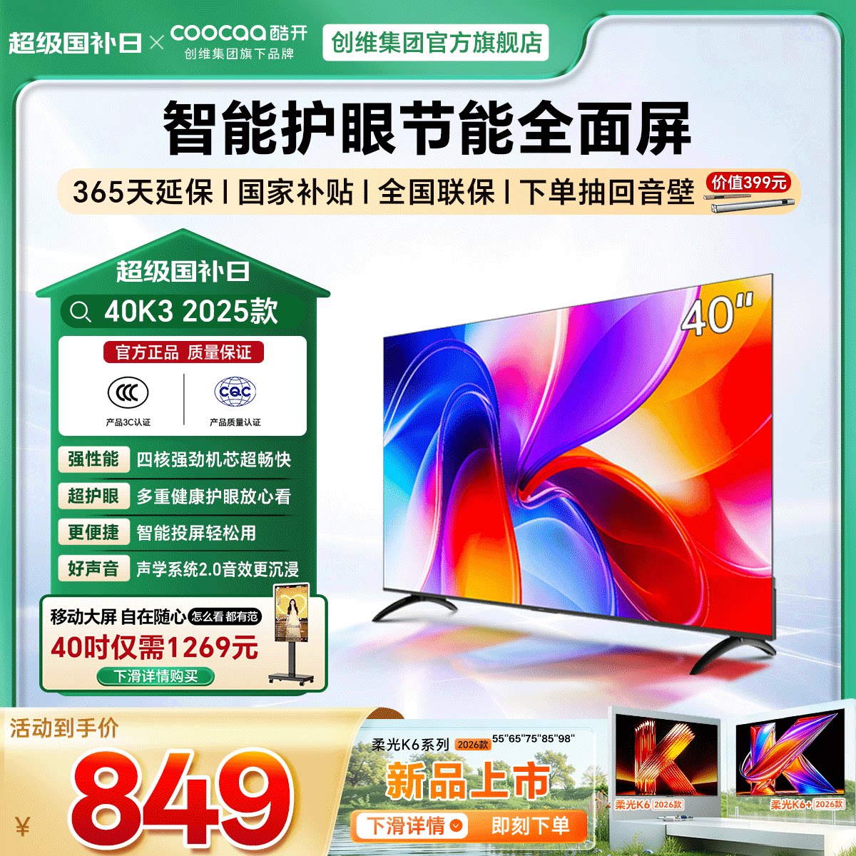 💥揭秘!创维酷开K3 25款40英寸高清家用液晶屏幕,补贴后狂欢来袭🎉