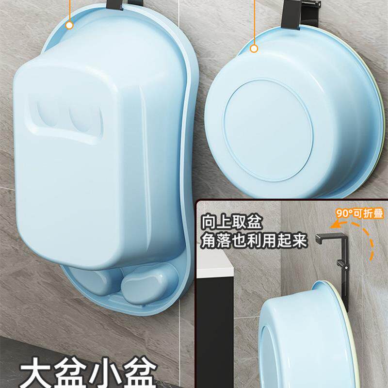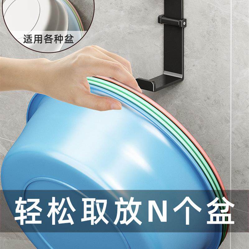 📚 不锈钢脸盆挂钩免打孔浴室洗脸盆置物架浴室脚盆壁挂式收纳架子