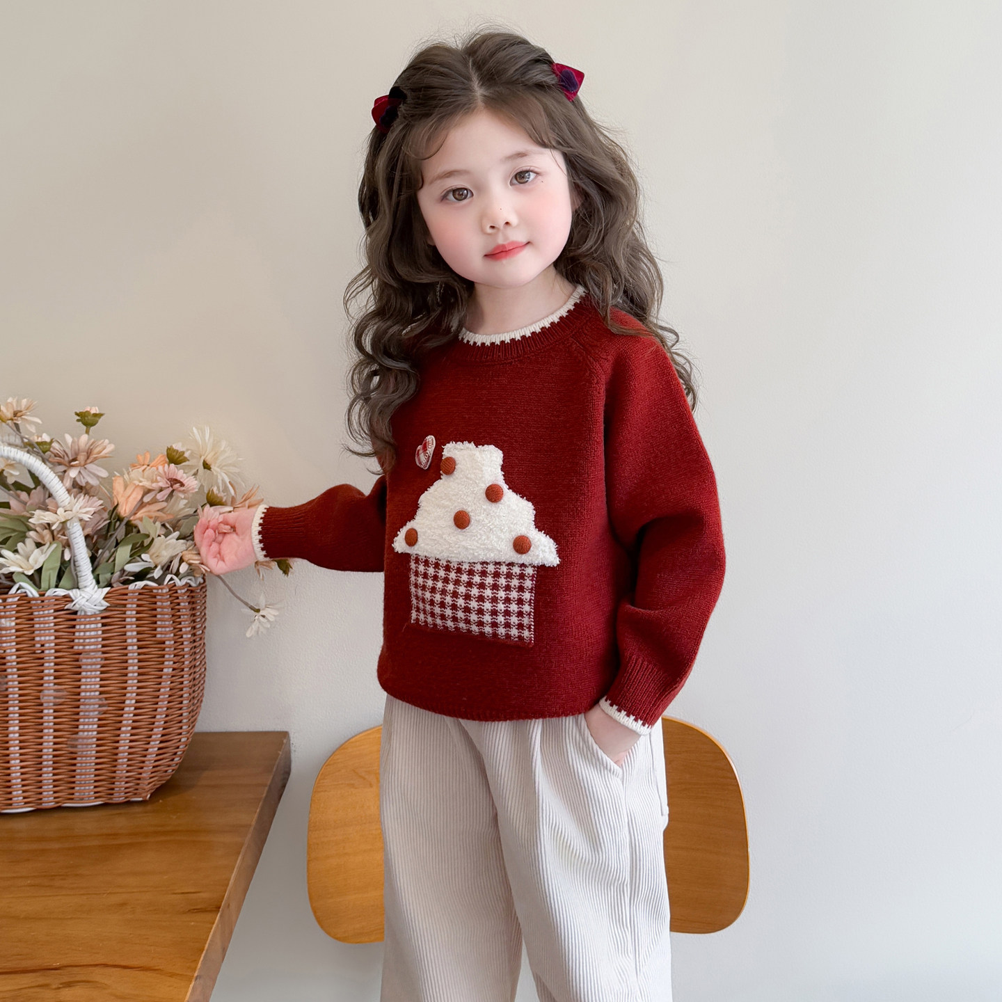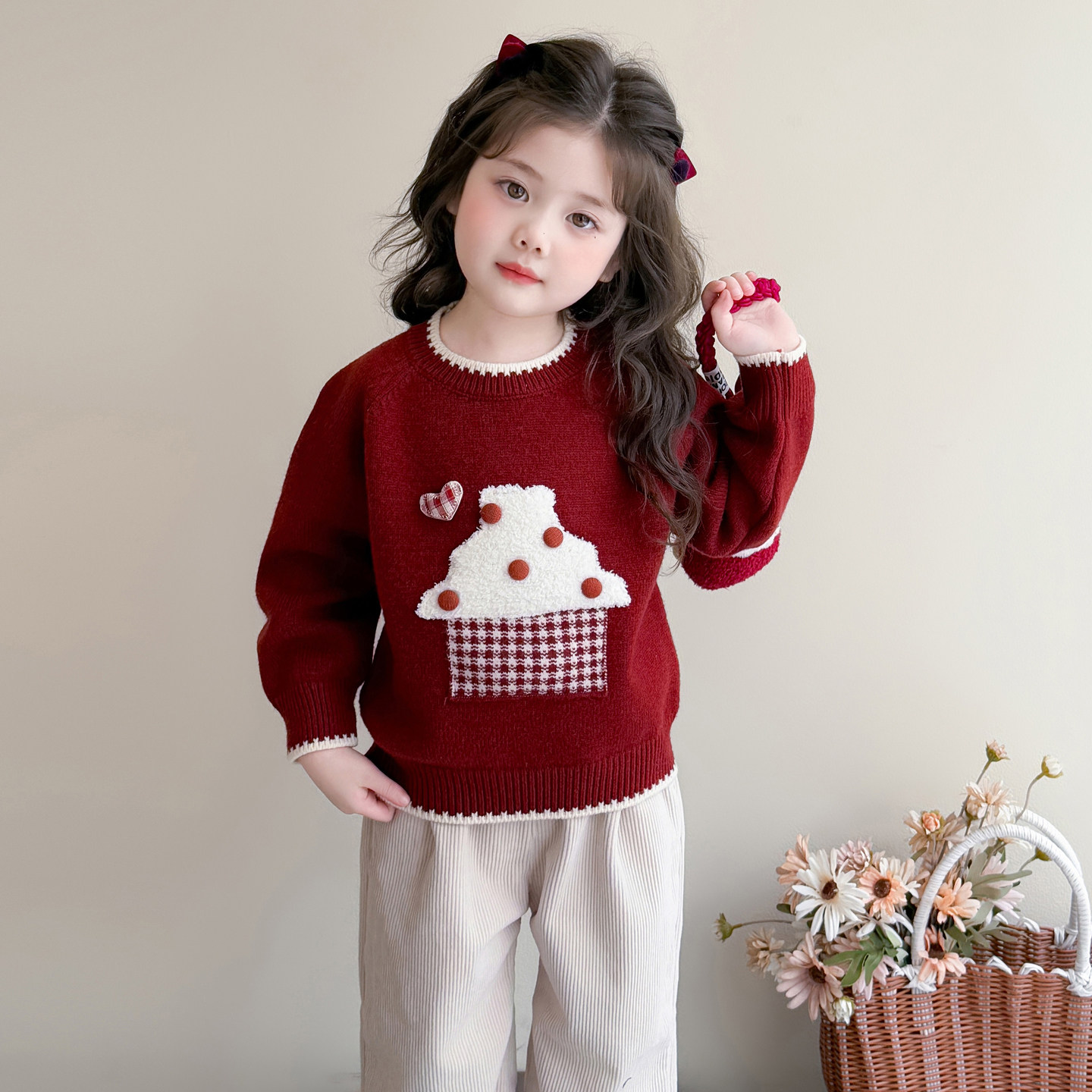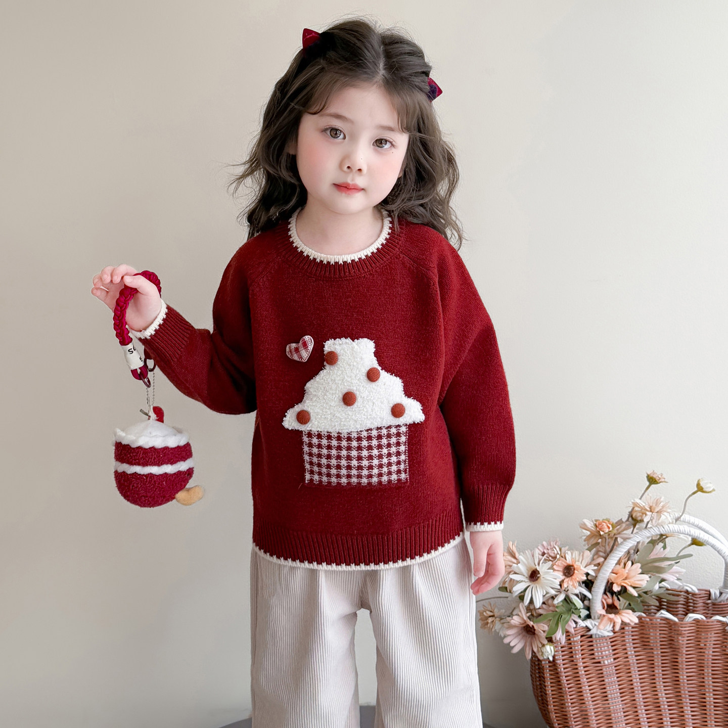 📚 女童毛衣2026新款儿童加绒秋冬季加厚针织小女孩女宝宝毛线衣红色