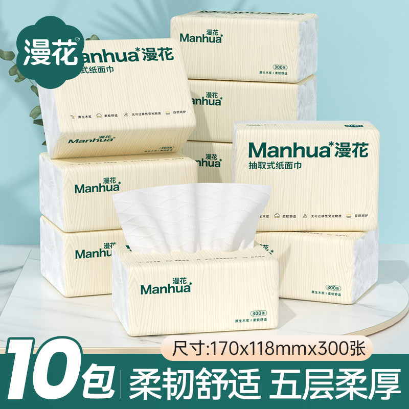 📚 漫花抽取式面巾纸餐巾抽纸巾家商用实惠装卫生纸巾厕纸可擦手QW