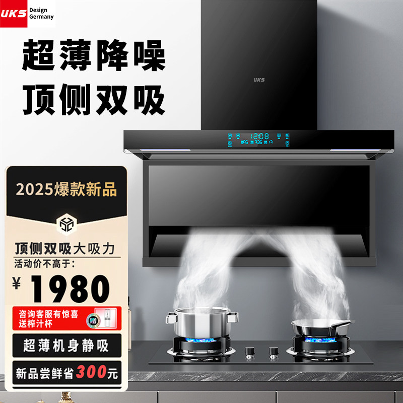 📚 德国UKS变频抽油烟机 顶侧双吸油烟机 低噪音 大吸力抽油烟机