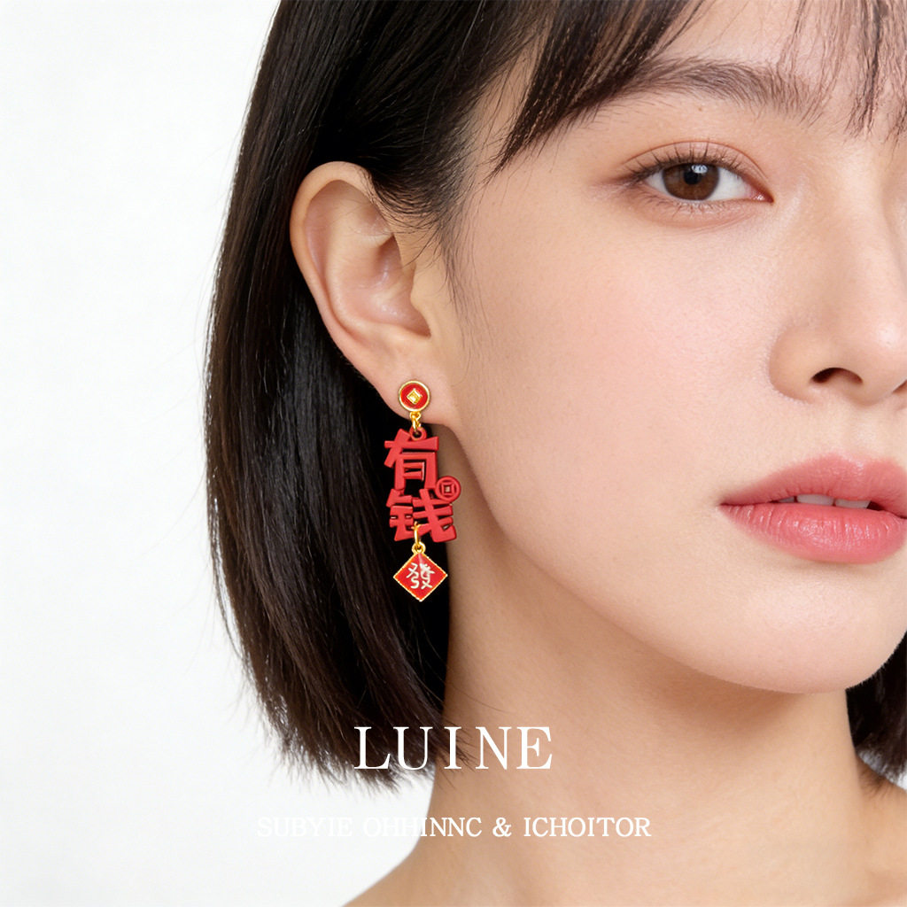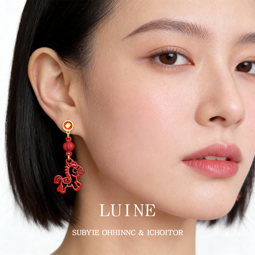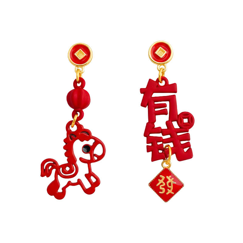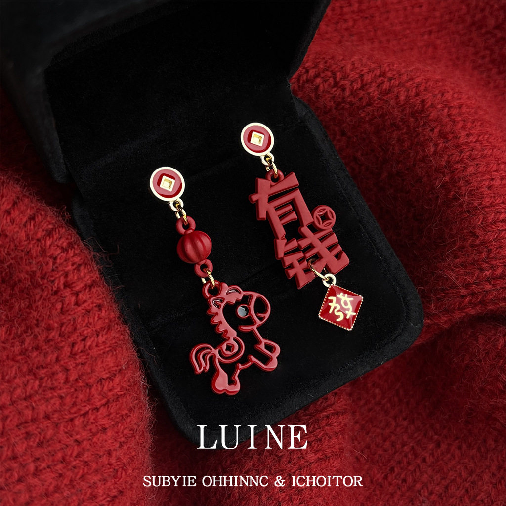 📚 马上有钱国潮新中式烤漆质感剪纸马不对称小众过年氛围耳饰女耳环