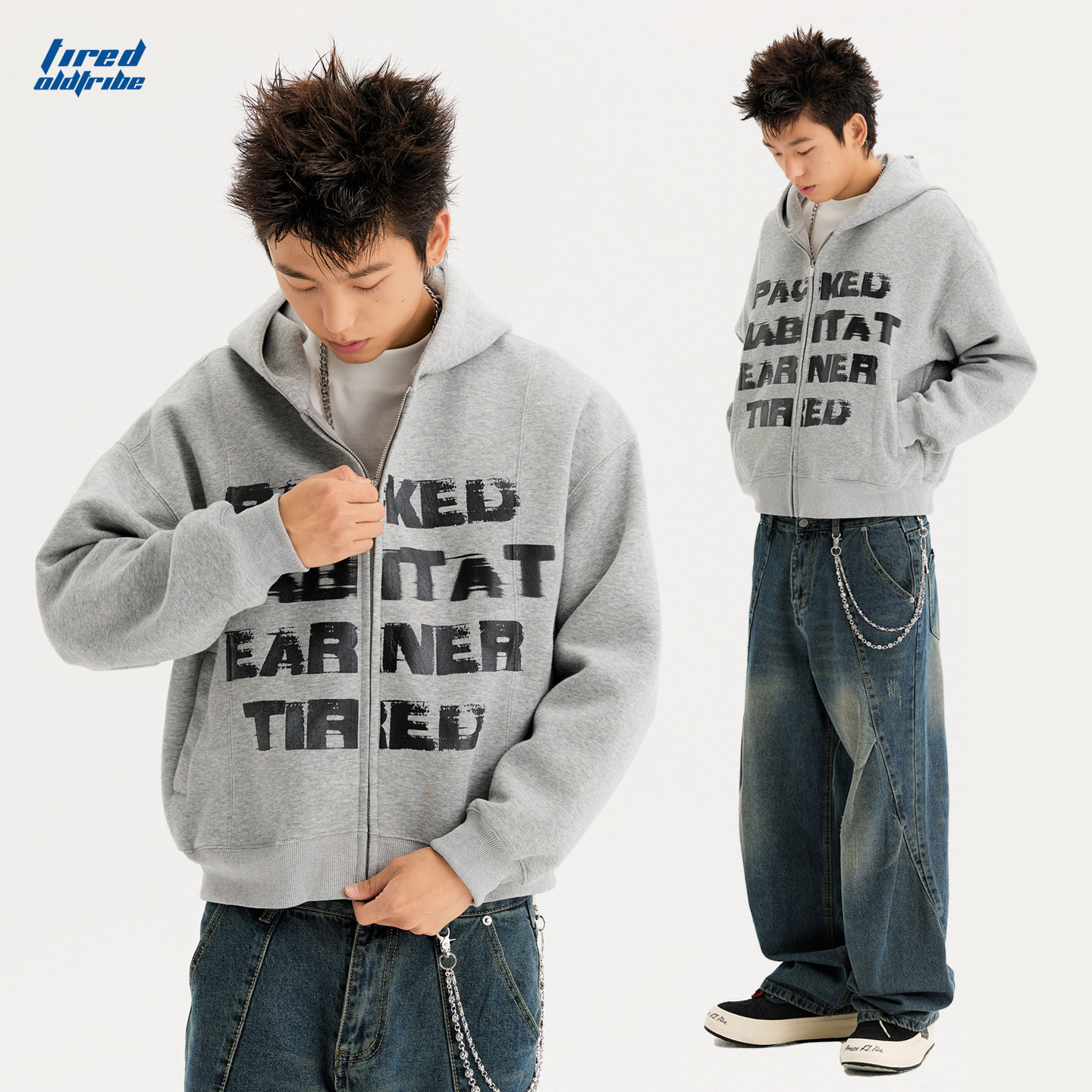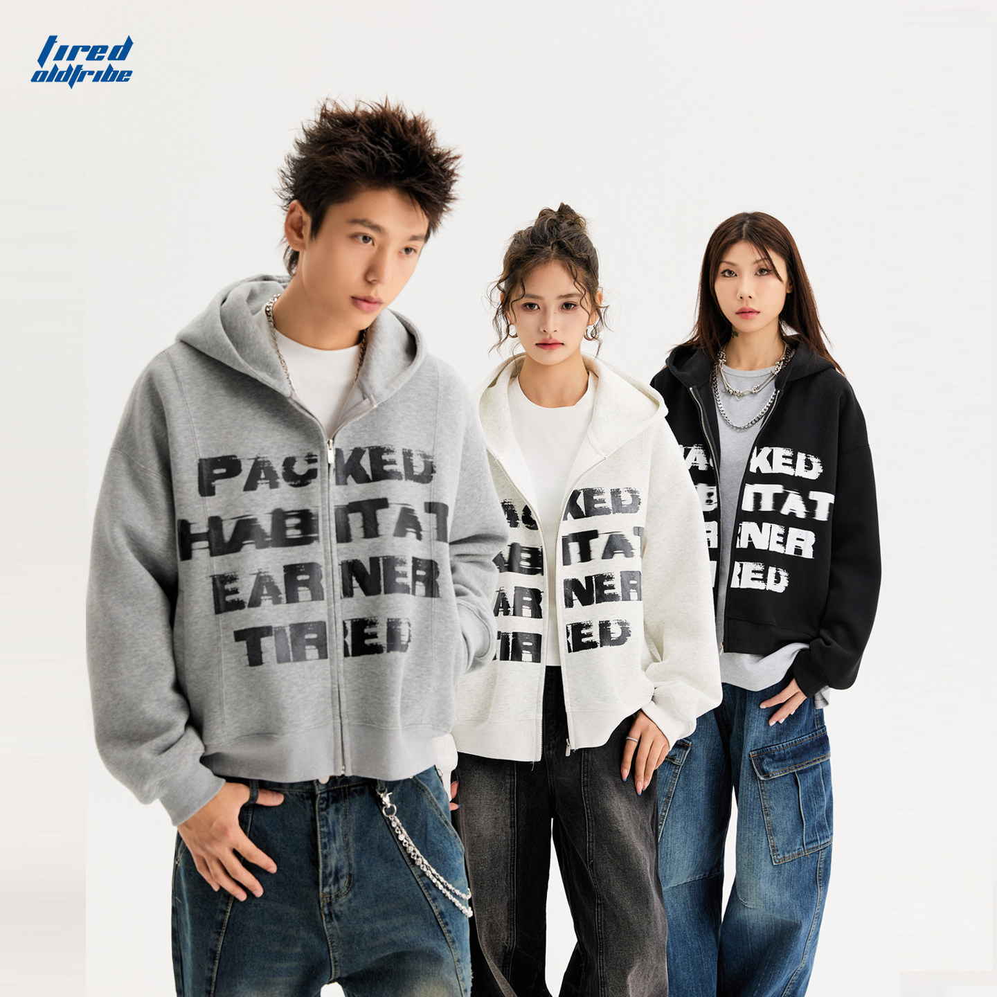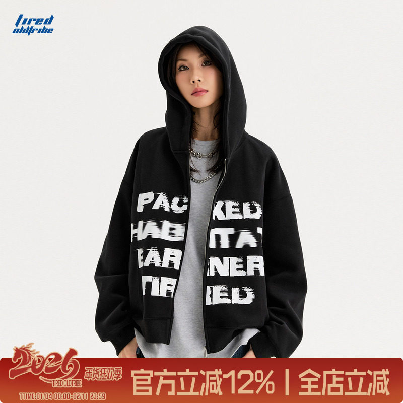 📚 TIRED美式开衫卫衣情侣款cleanfit短版连帽长袖宽松休闲外套上衣