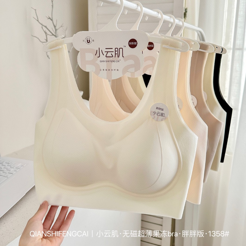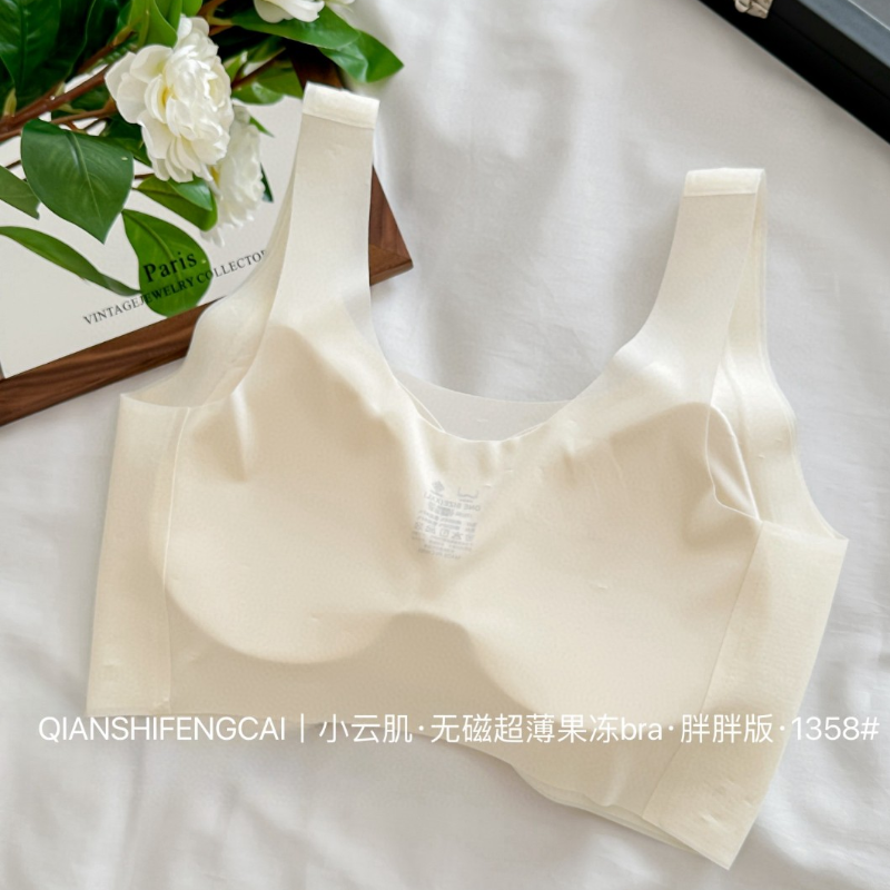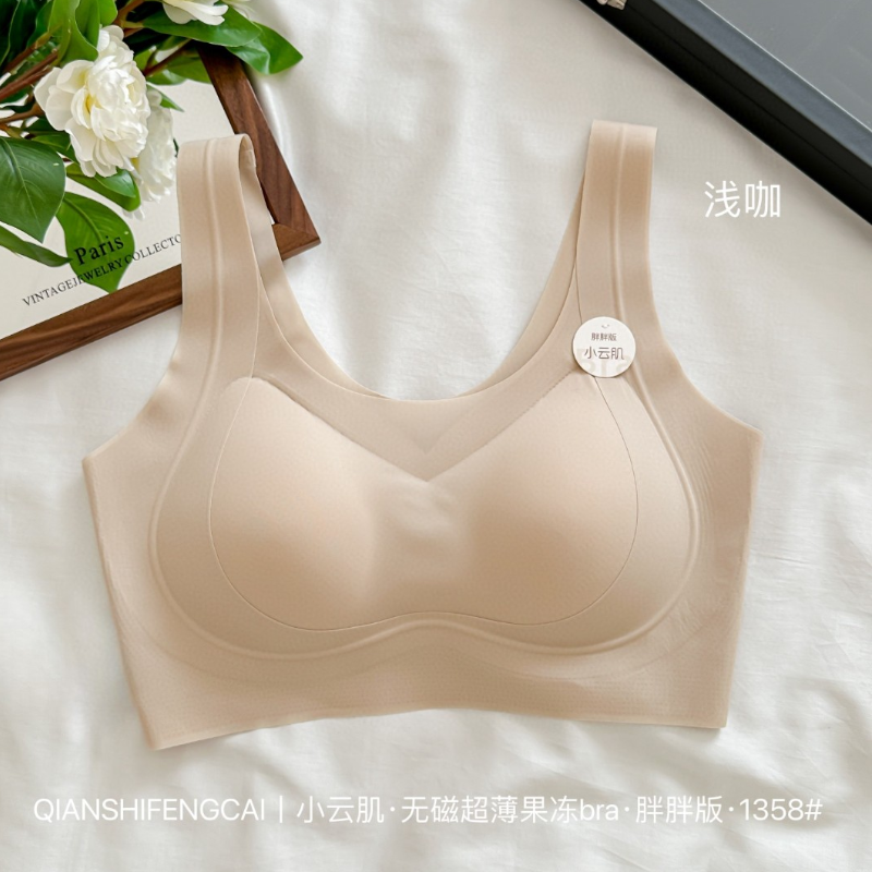 📚 小云肌内衣胖胖版无磁云感果冻软支撑背心粉底液薄杯隐形文胸1358