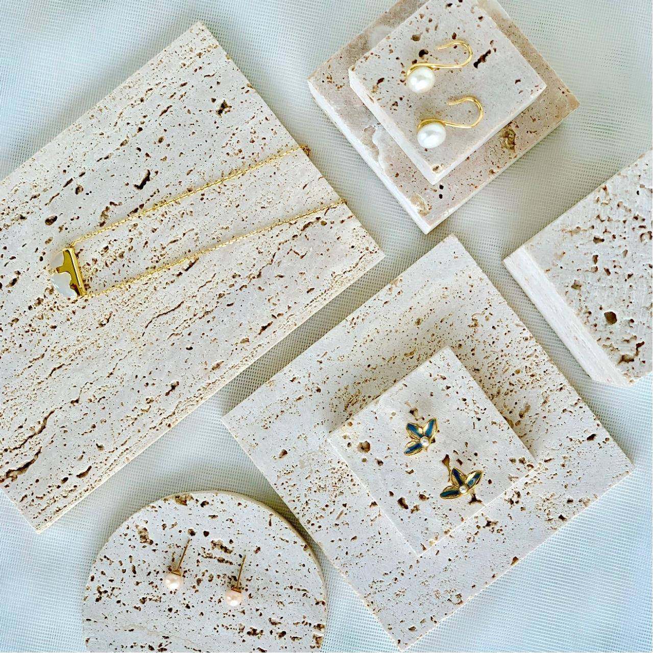 📚 工厂出口travertine石灰华圆形罗马洞石块圆柱底座收纳托盘