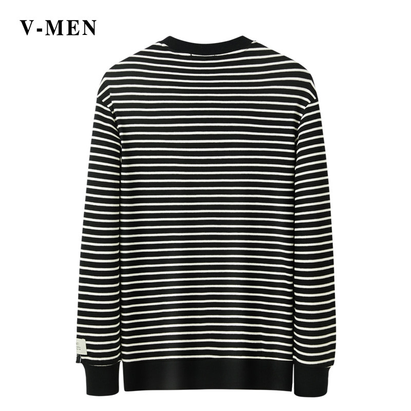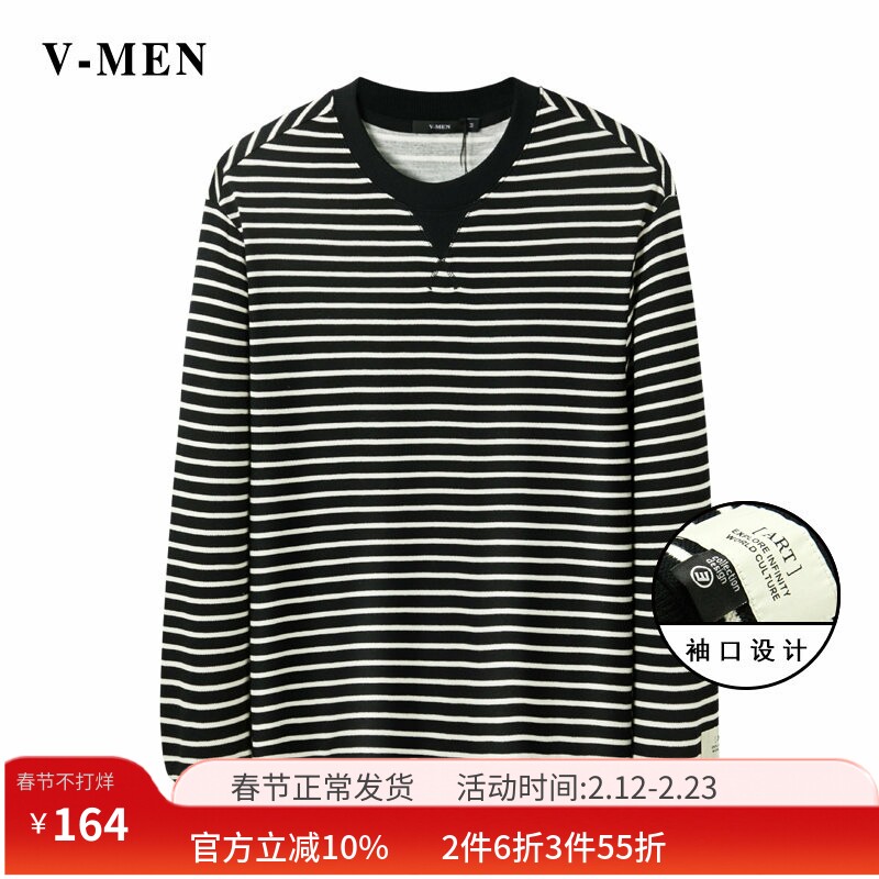 📚 VMEN威曼新款条纹长袖T恤男免烫套头圆领休闲上衣秋季外套022W219