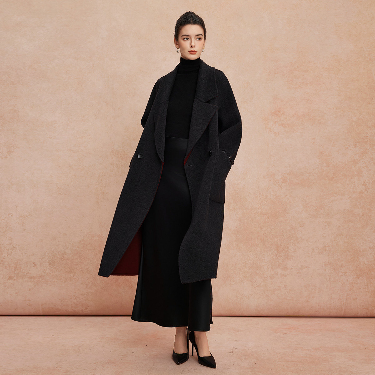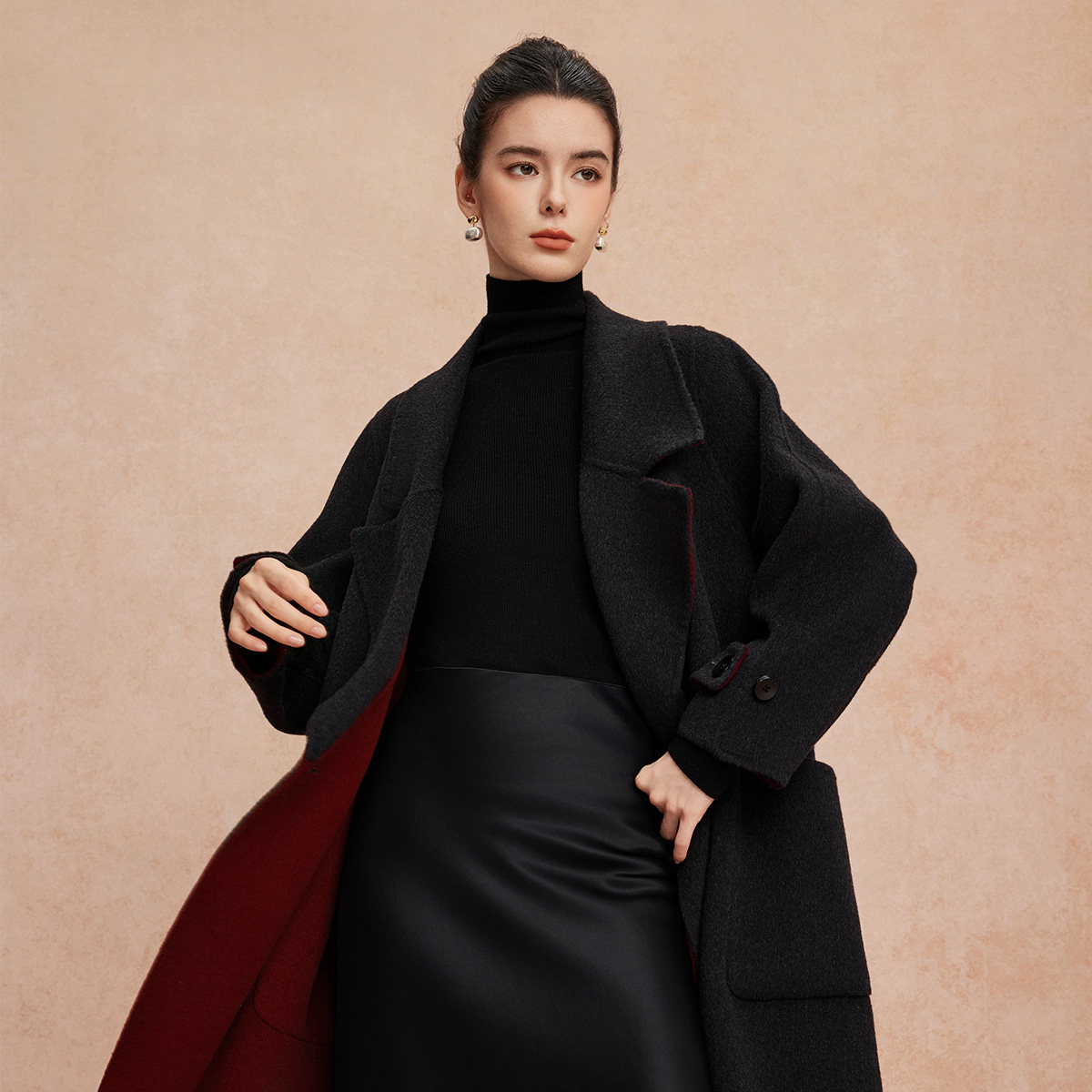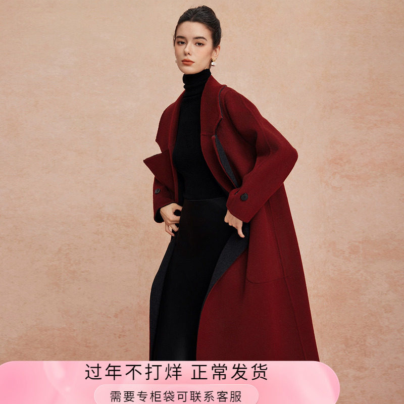 📚 斯尔丽25新款双面双色正反两穿双排通勤优雅气质简约长外套
