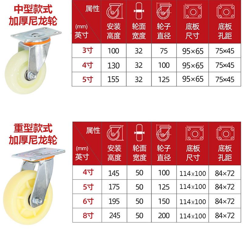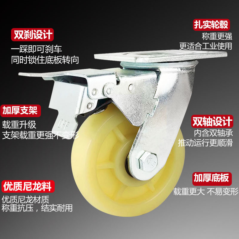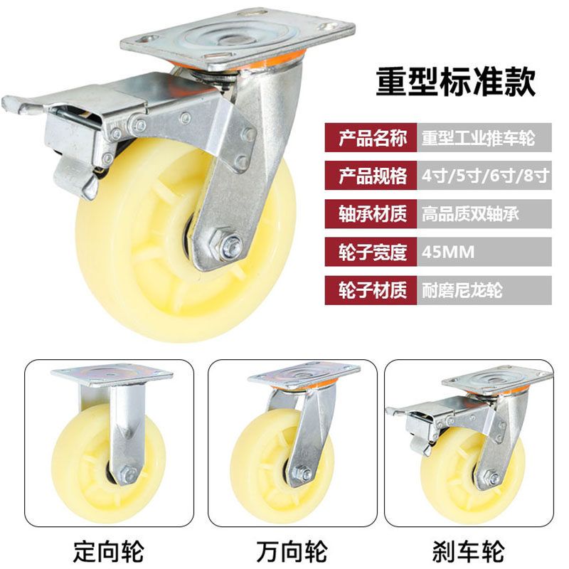 📚 万向轮6寸轮子重型8寸板车小推车带刹车尼龙轮手推车拖车脚轮转轮