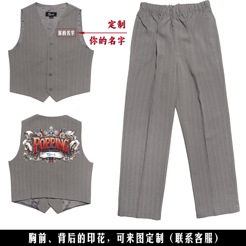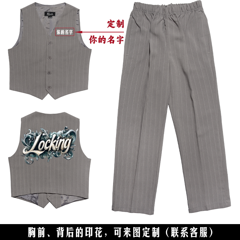 📚 非零旦斯 岩灰条纹 街舞套装Popping机械舞Locking演出服马甲西装