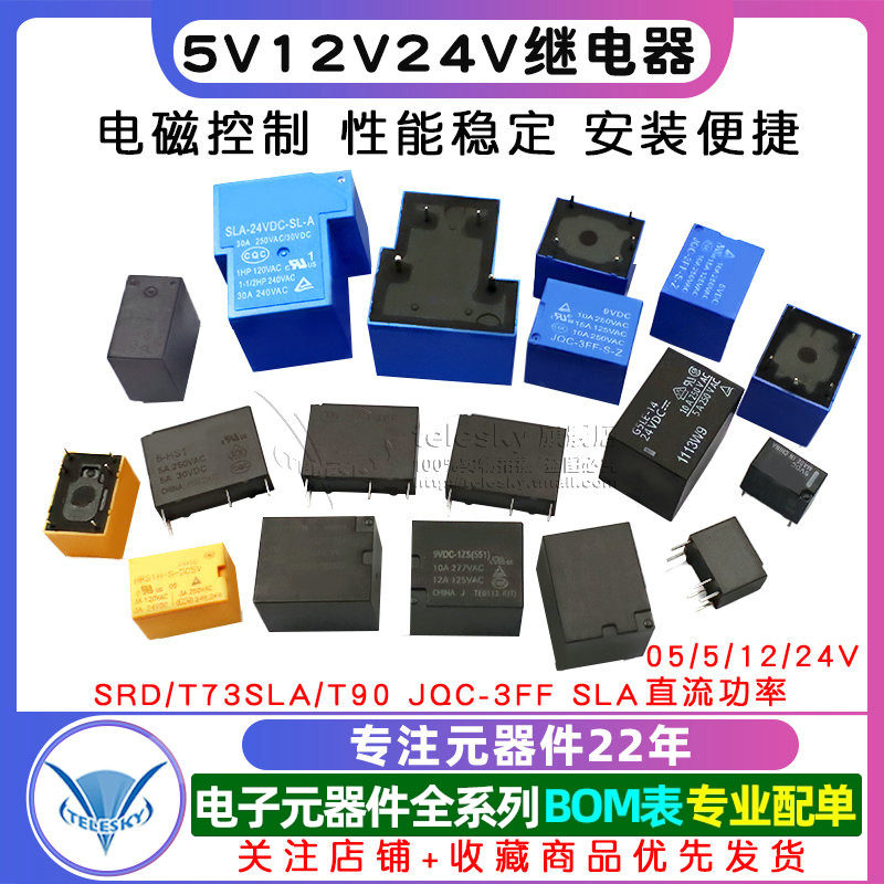 📚 继电器小型SRD/T73微型SLA/T90 JQC-3FF SLA 05/5/12/24V直流功率