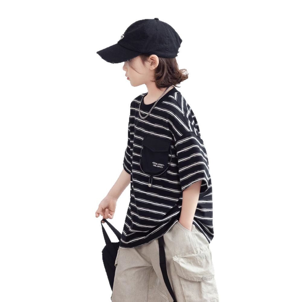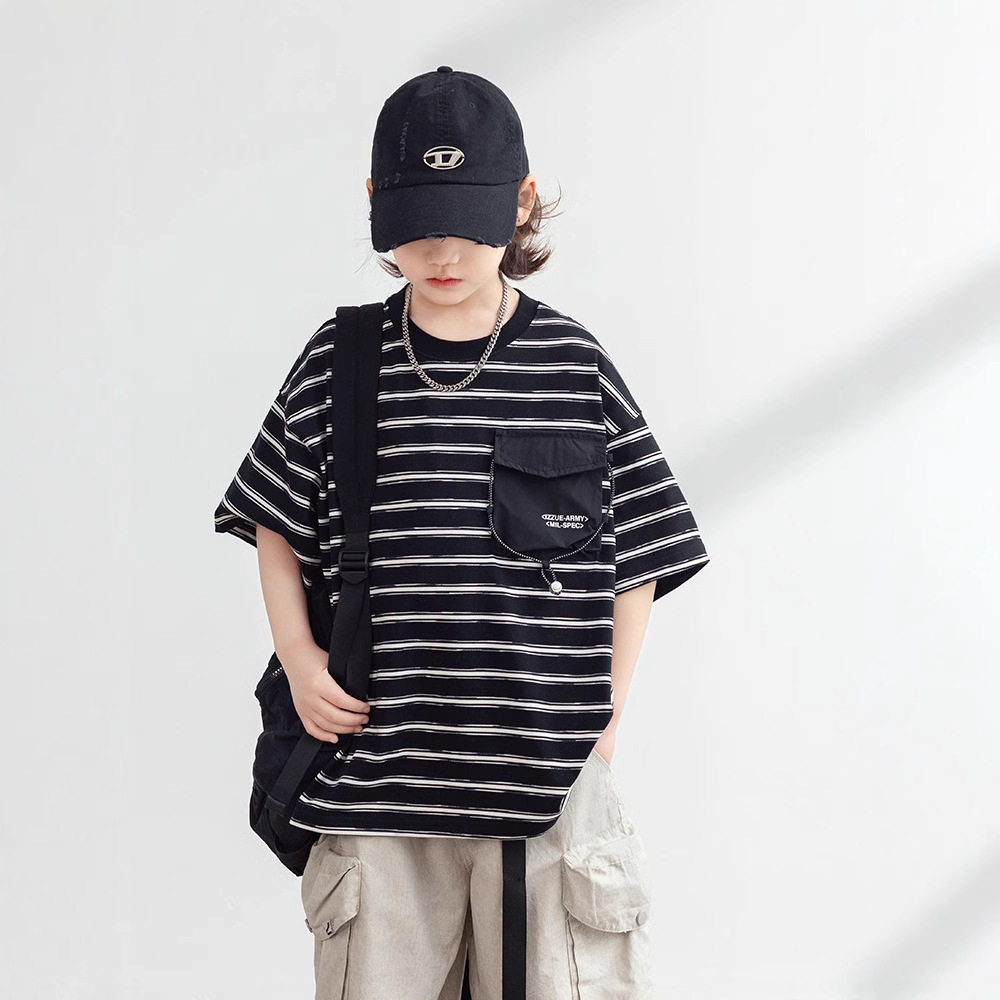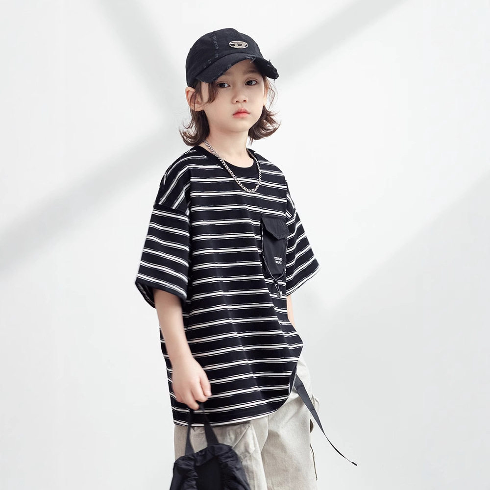 📚 2026夏装波拉童装男童女童条纹短袖T恤儿童圆领上衣Tee打底衫