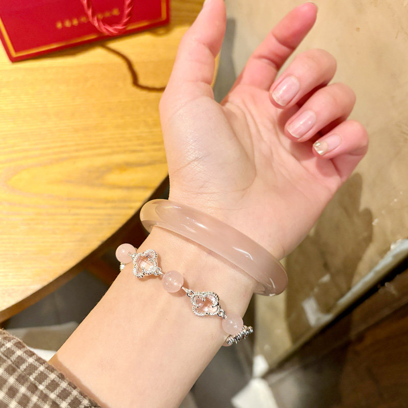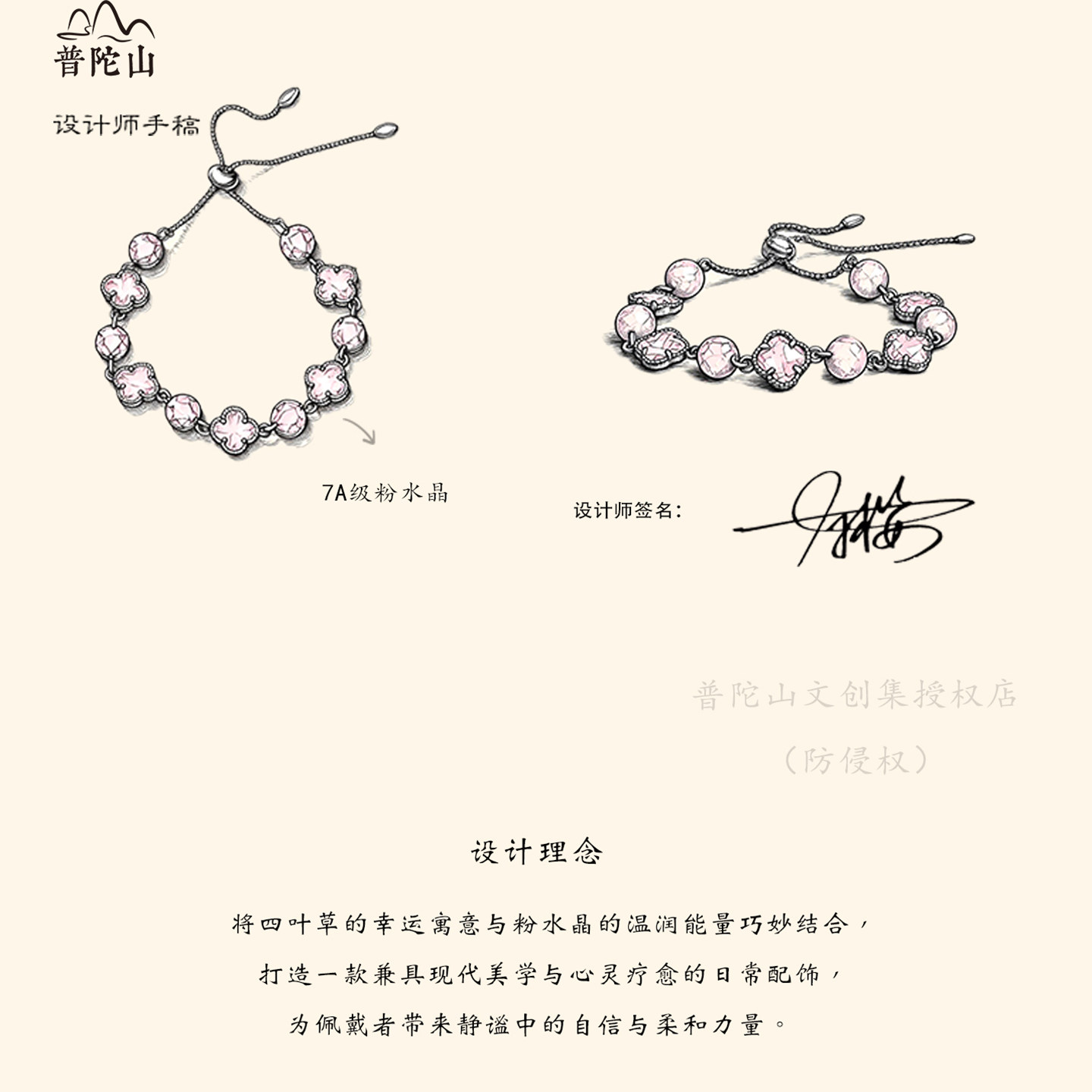 📚 普陀山文创集幸运四叶草天然粉水晶手链女文雅礼物集晋陀山优雅