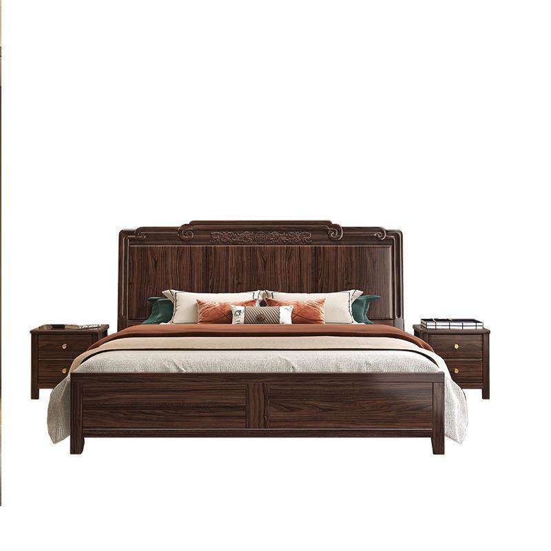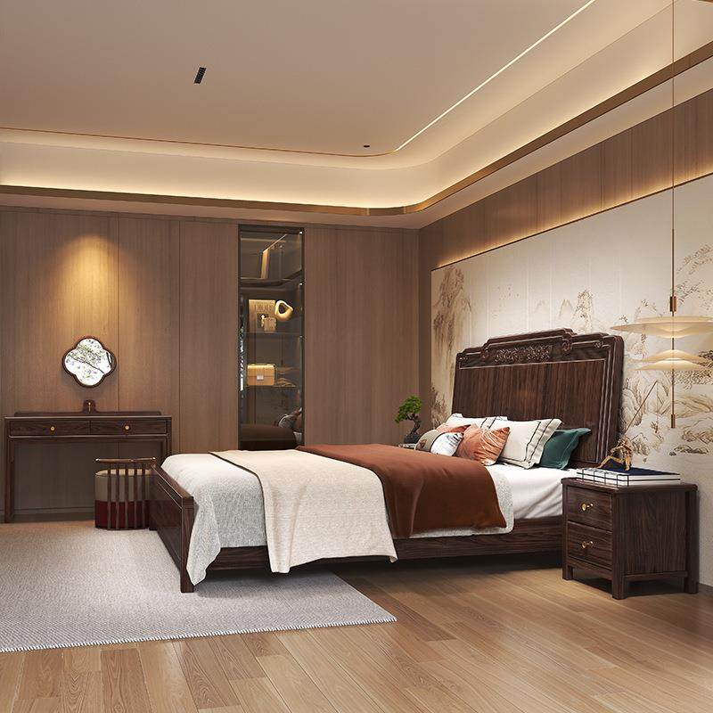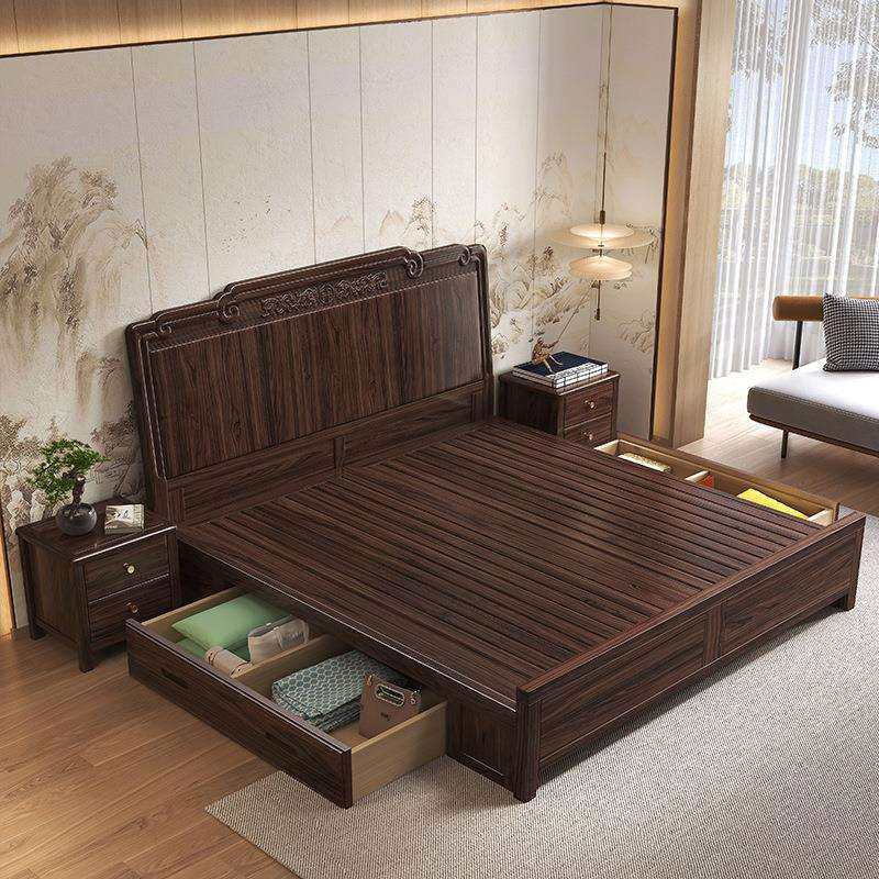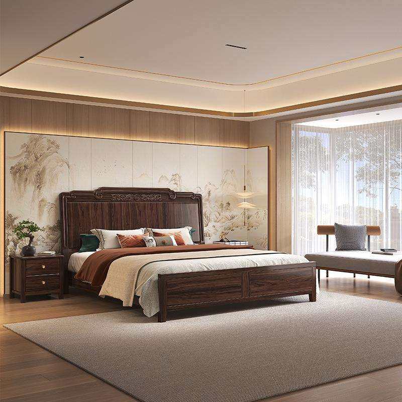 📚 新中式实木床1.8米主卧轻奢储物简约双人床 家用高端乌金木家具