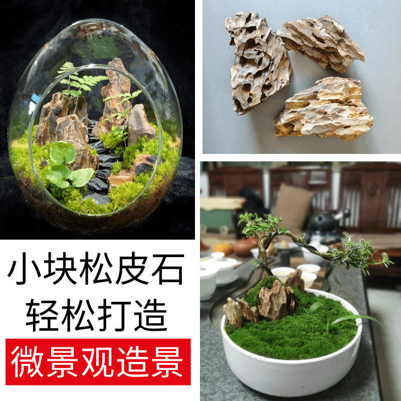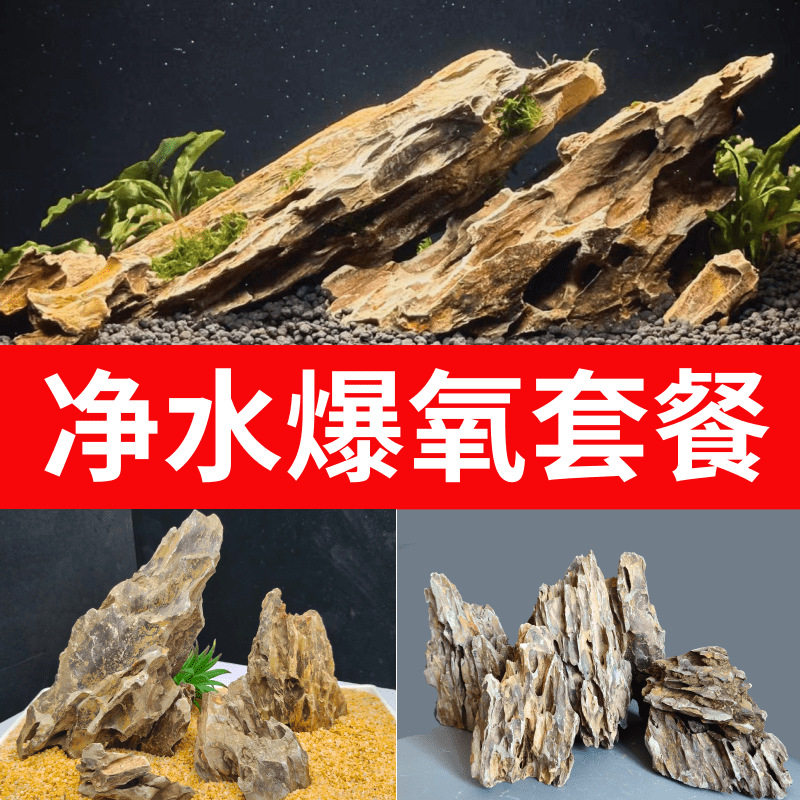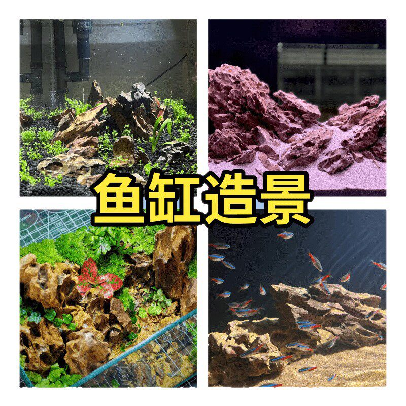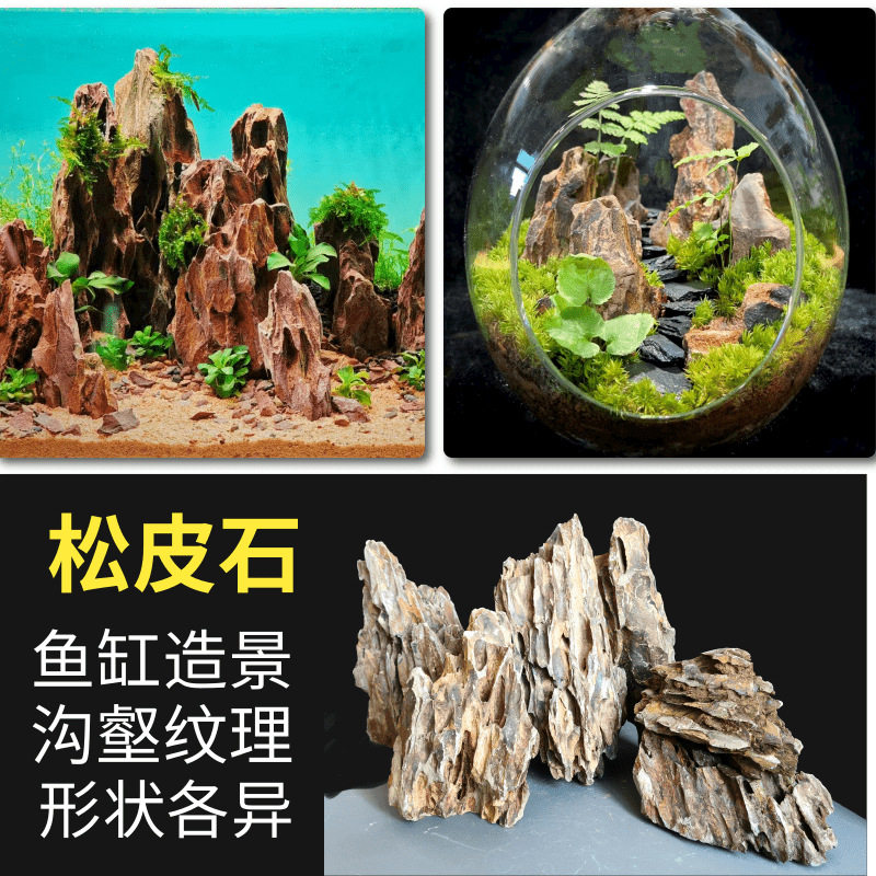 📚 鱼缸造景石天然切底松皮石大山峰假山真石头套装原石玻璃盆景摆件
