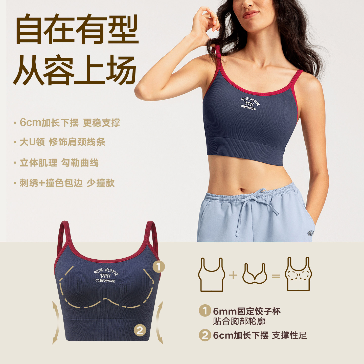 📚 VfU带胸垫运动文胸女U型美背吊带背心健身训练外穿内衣瑜伽普拉提