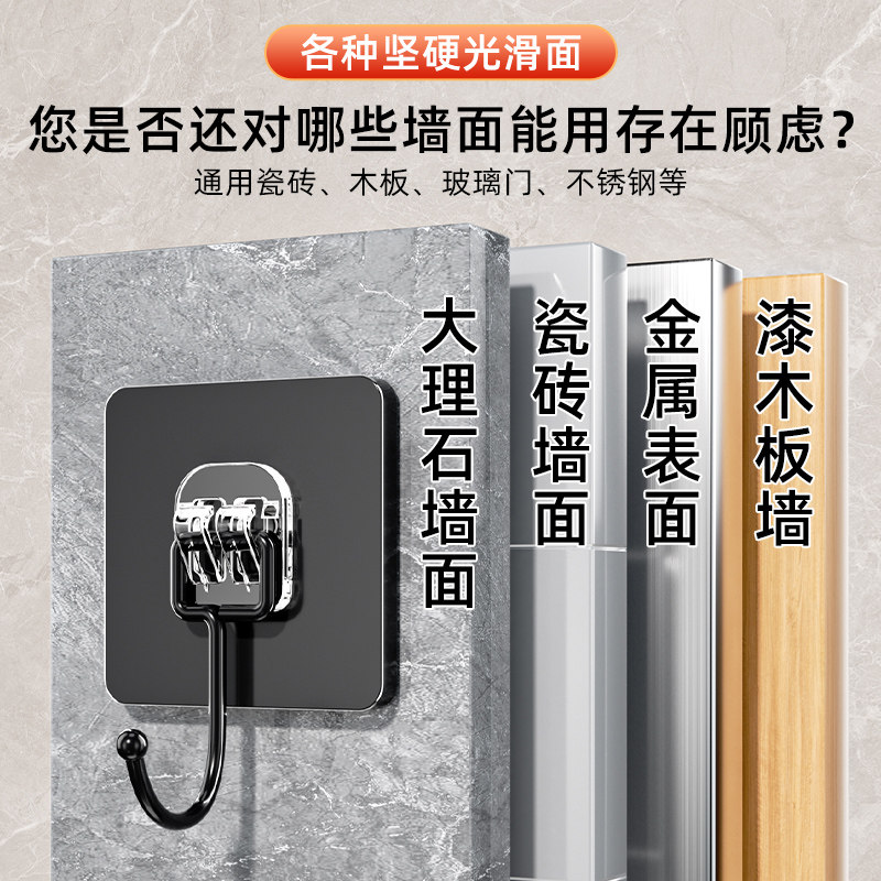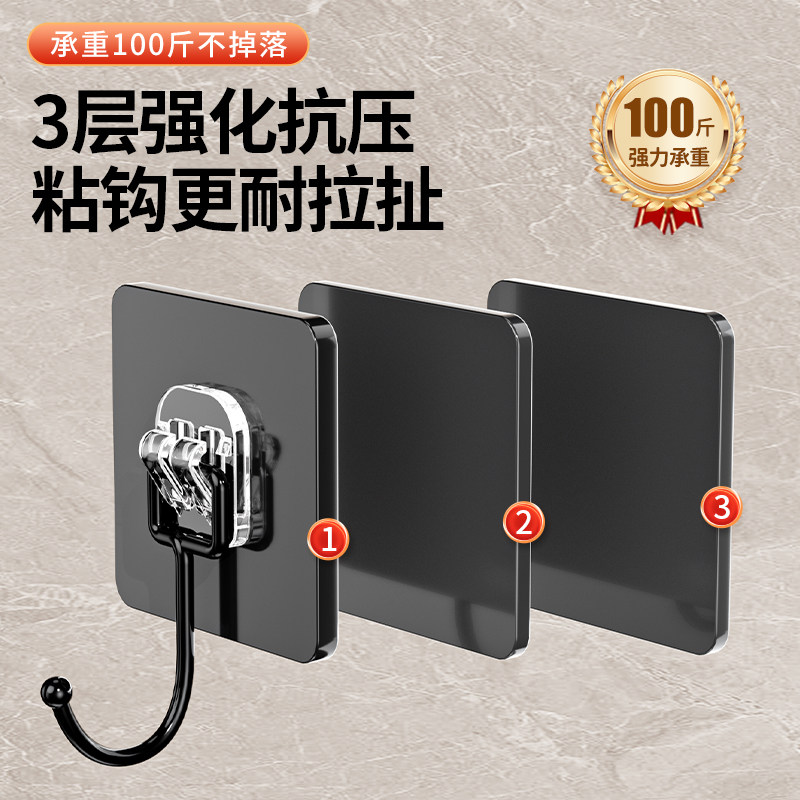 📚 挂钩强力粘胶粘钩免打孔强力承重无痕厨房墙壁透明不锈钢钩子吊钩