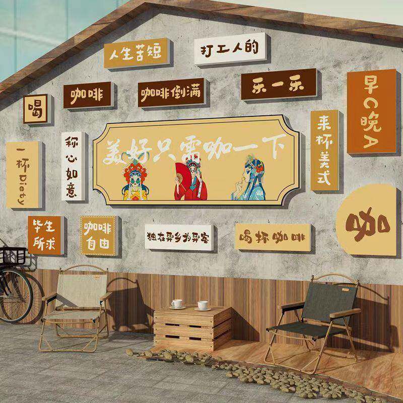 📚 网红打卡背拍照区清吧小酒馆咖啡装饰品场景布置户外工业风墙贴面