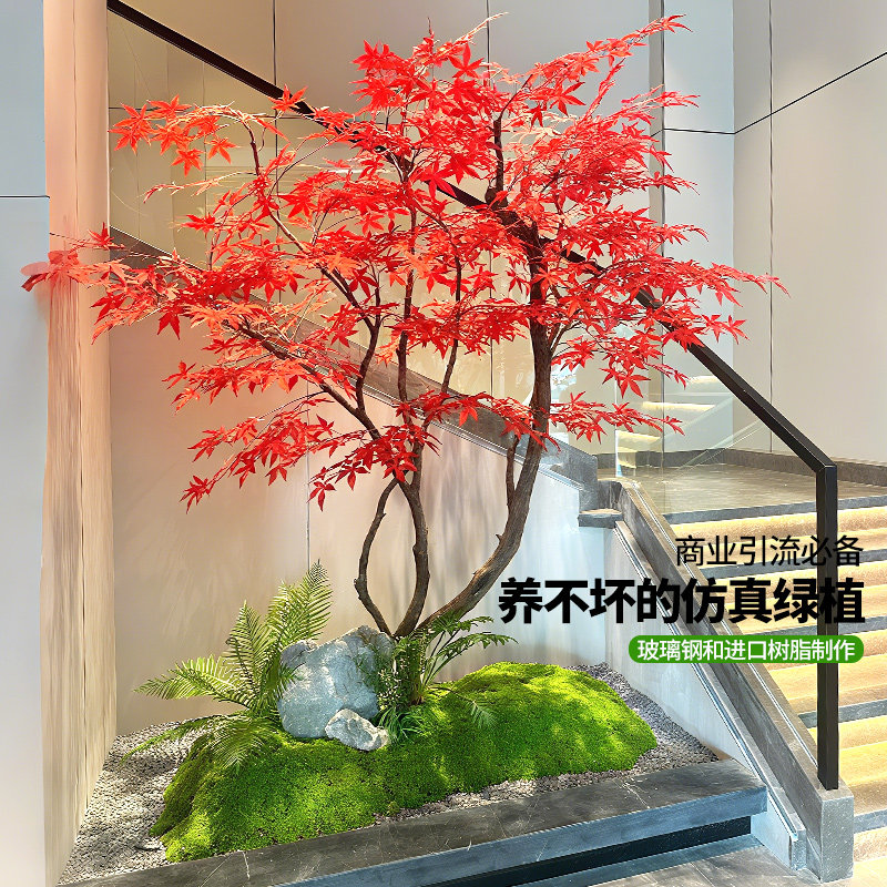 📚 仿真植物造景鸡爪槭室内装饰景观入户假绿枫树楼梯下仿生绿植造景