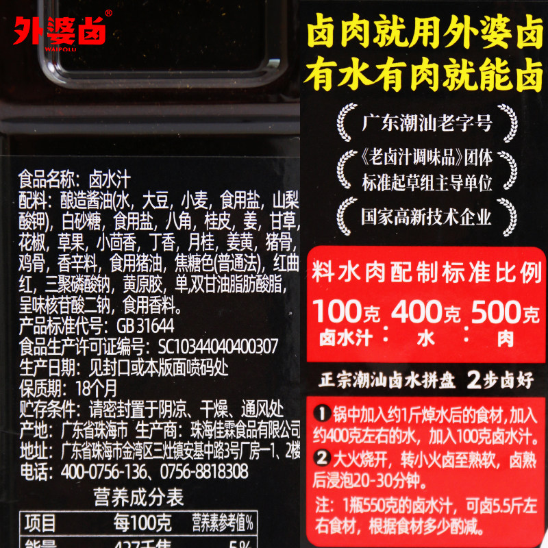 📚 外婆卤卤水汁550g潮汕卤水酱料卤料家用卤荤菜素卤水牛肉鸡翅卤水