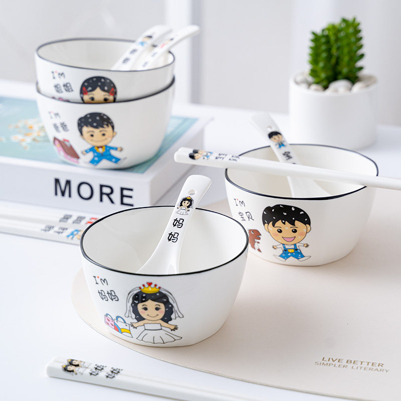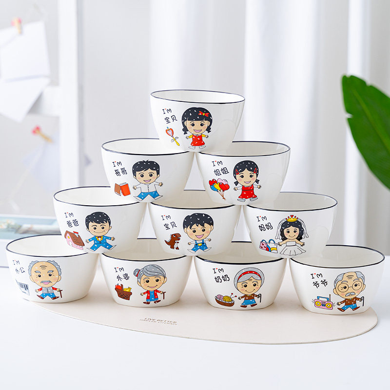 📚 4.5 英寸家庭专属称呼亲子区分陶瓷吃米饭碗卡通家用北欧方形创意