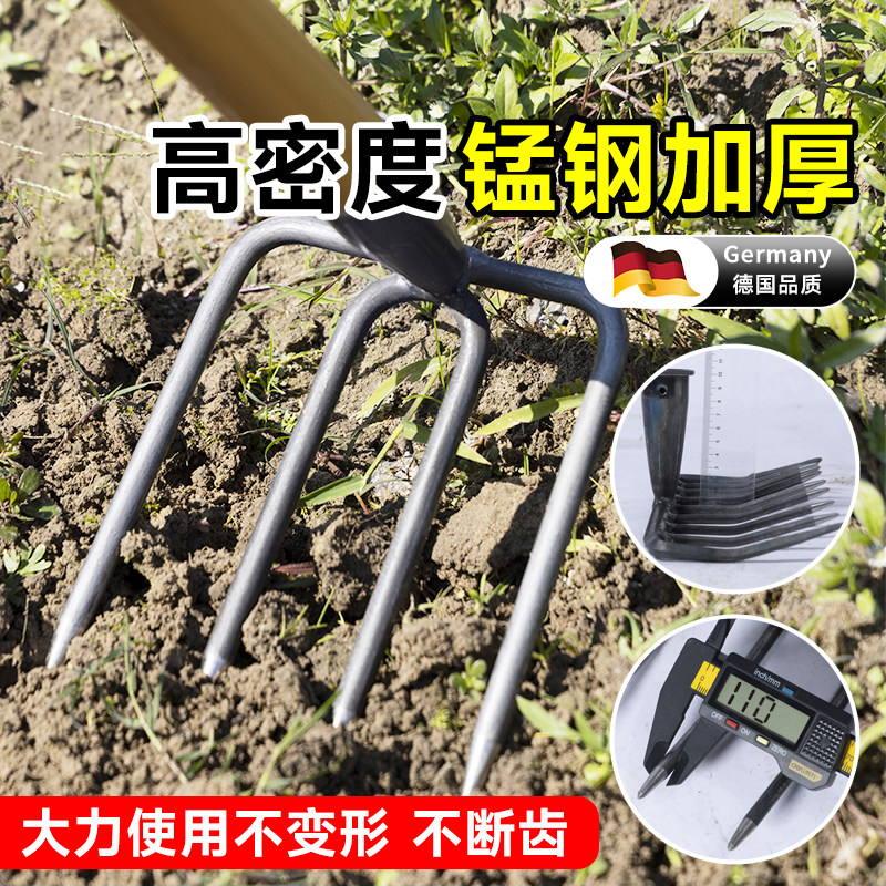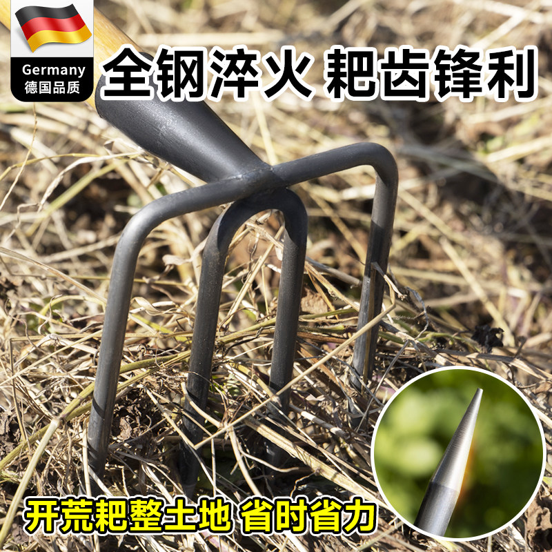 📚 四齿锄头老式农用三齿钉耙农具松土耙草整地神器多功能高锰钢耙子