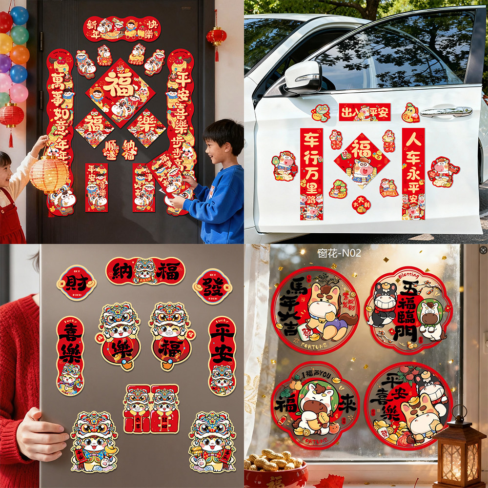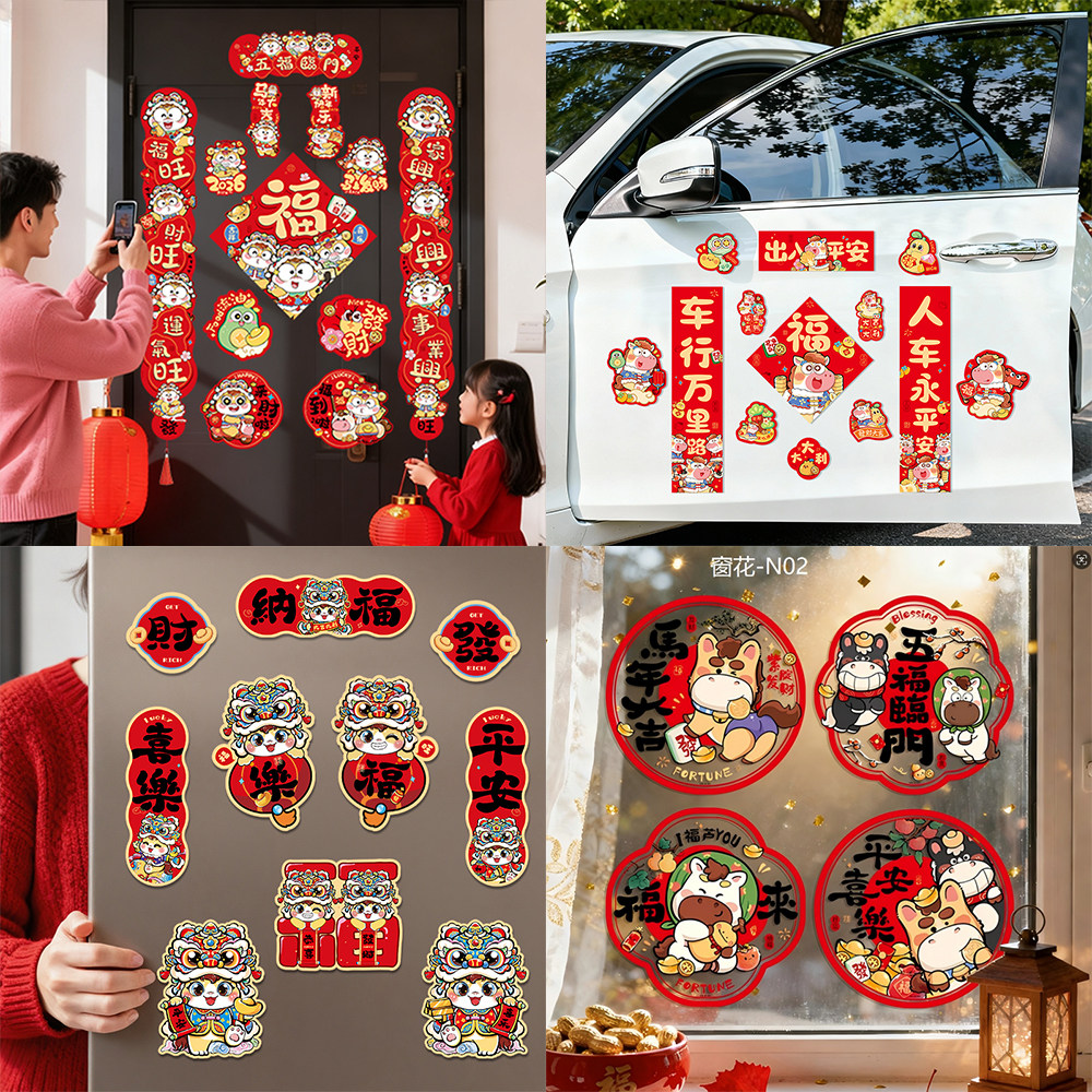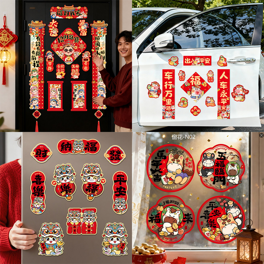 📚 马年磁吸对联68cm套装春联对联入户新款大门布置新年氛围福字门贴