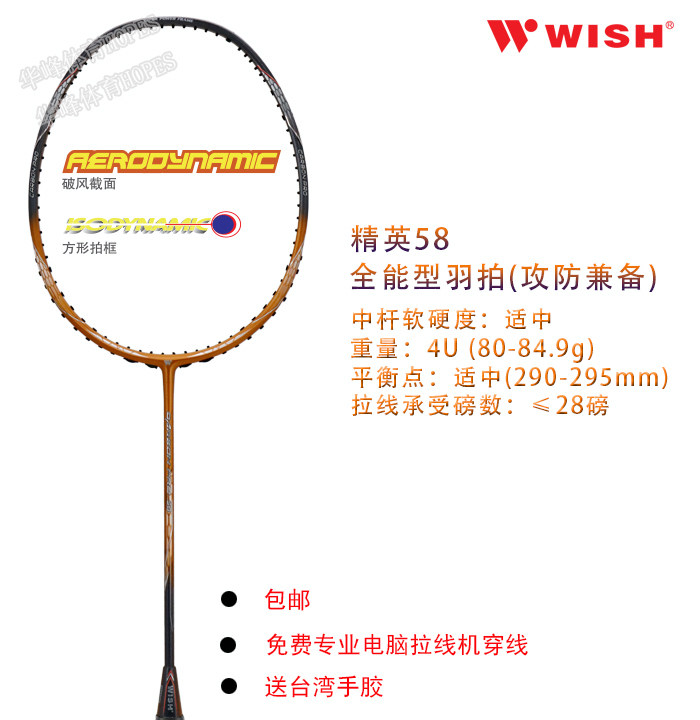 📚 伟士精英系列58 59 60碳纤维羽毛球拍 指定磅数免费拉线 教练推荐
