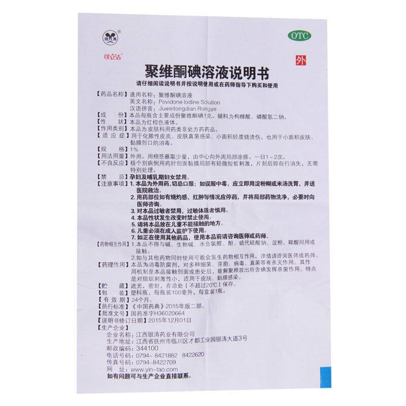 📚 可立洁聚维酮碘溶液1%*100ml化脓性皮炎真菌感染轻度烫伤创口