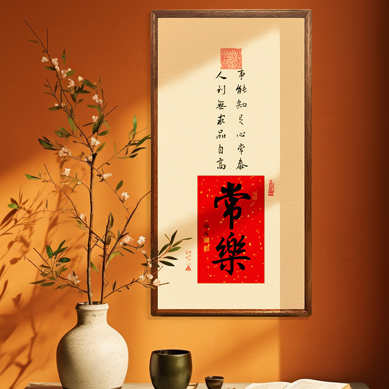 📚 欢喜常乐实木字画挂画书法画框客厅卧室暖居摆件寓意美好装饰画