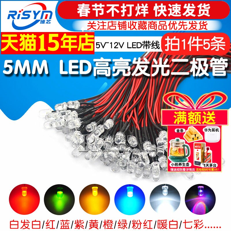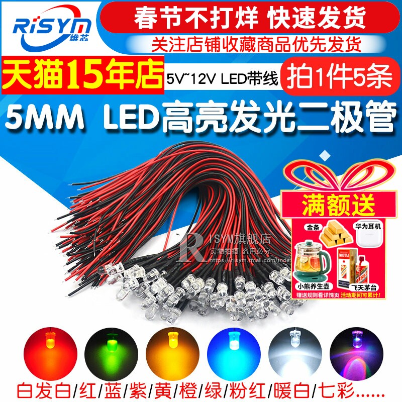 18¥ MF937 Guu2UpUPrFu¥ https://m.tb.cn/h.7AIHjXI 5MM高亮LED灯发光二极管5V 12V带线LED灯珠小灯泡玩具车指示灯led --------------------- 【原售价】5.1元 【现售价】5.1元。