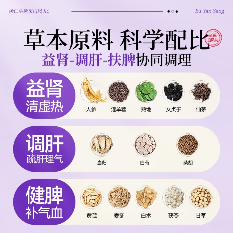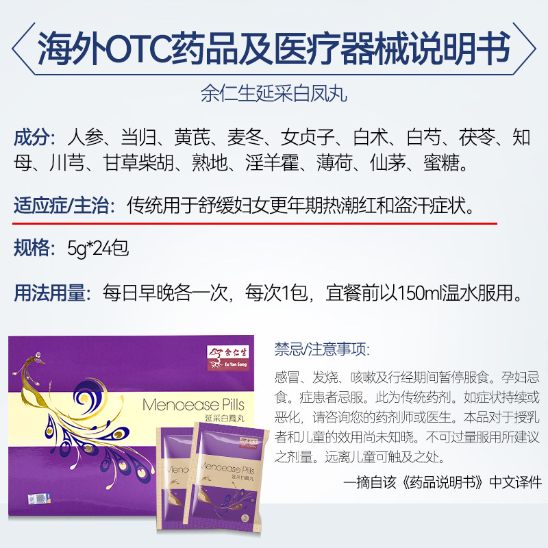 📚 香港直邮余仁生延采白凤丸舒缓女性更年期不适热潮红和盗汗症状