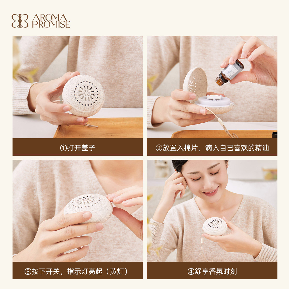 📚 Aroma promise香薰盒风扇精油香氛机迷你静音随身便携扩香