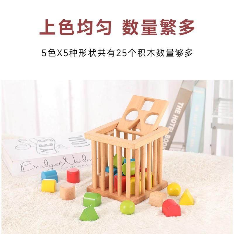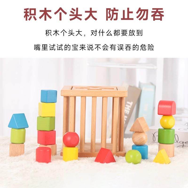 📚 0-2周岁木质积木华德福玩具颜色形状配对认知可啃咬搭高拼接玩具