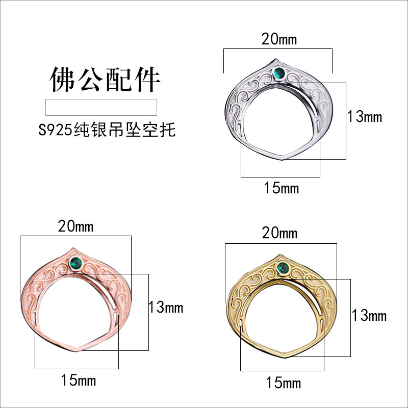 📚 S925纯银吊坠空托镶嵌翡翠白玉石佛公观音配件扣银托项坠空托女式