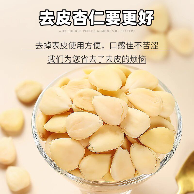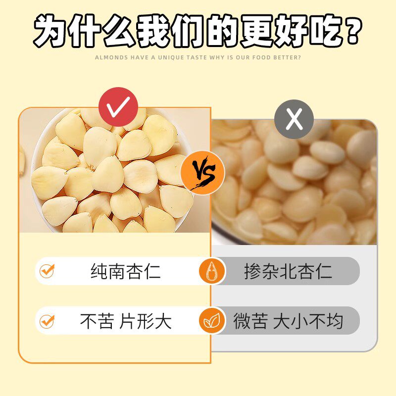 📚 承德去皮南北杏仁片干原味坚果烘焙食用旗舰店白生甜南苦北中药材