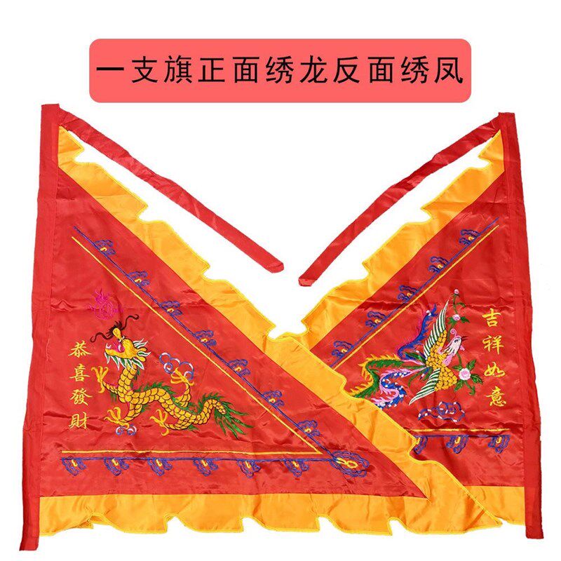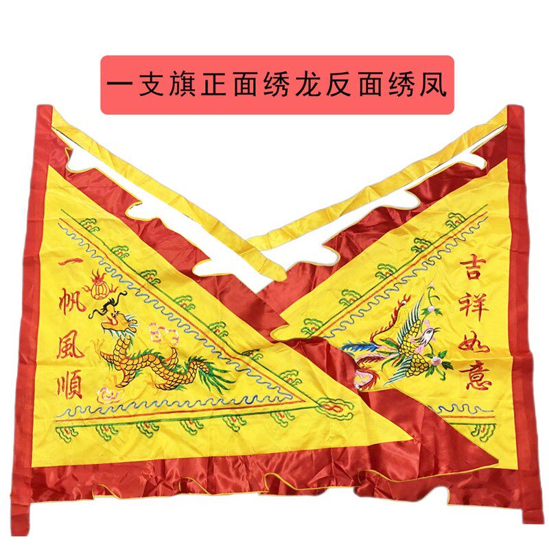 📚 1.5米龙凤旗双面刺绣凤旗龙旗仿古旗帜令旗龙凤三角旗可定制妈祖