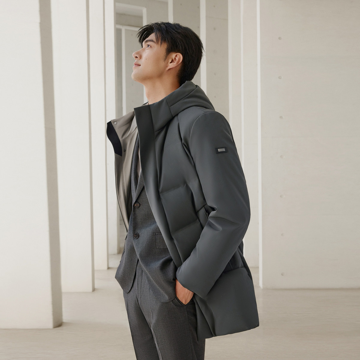 📚 【鹅绒】波司登冬男经典商务通勤厚羽绒服连帽中长款时尚都市通勤