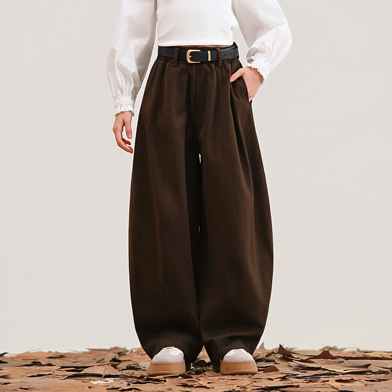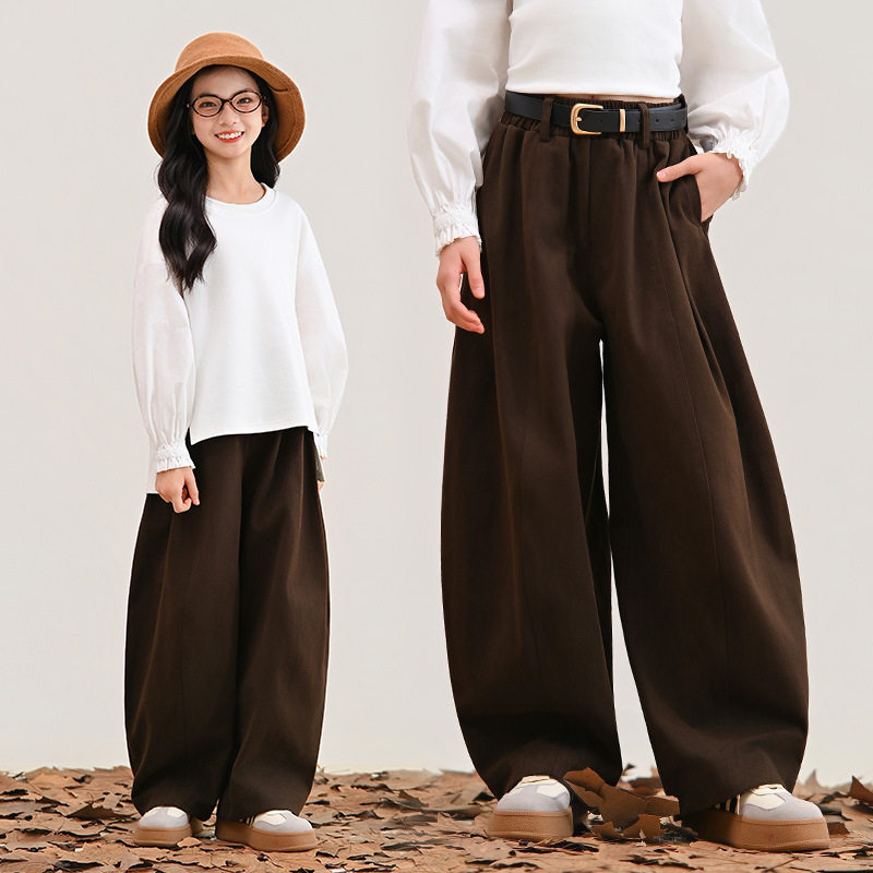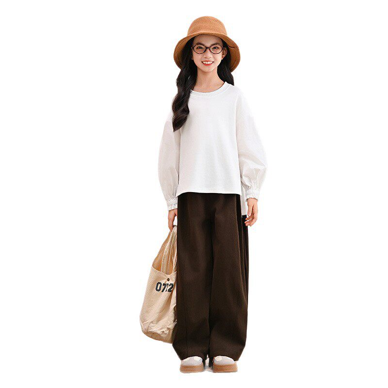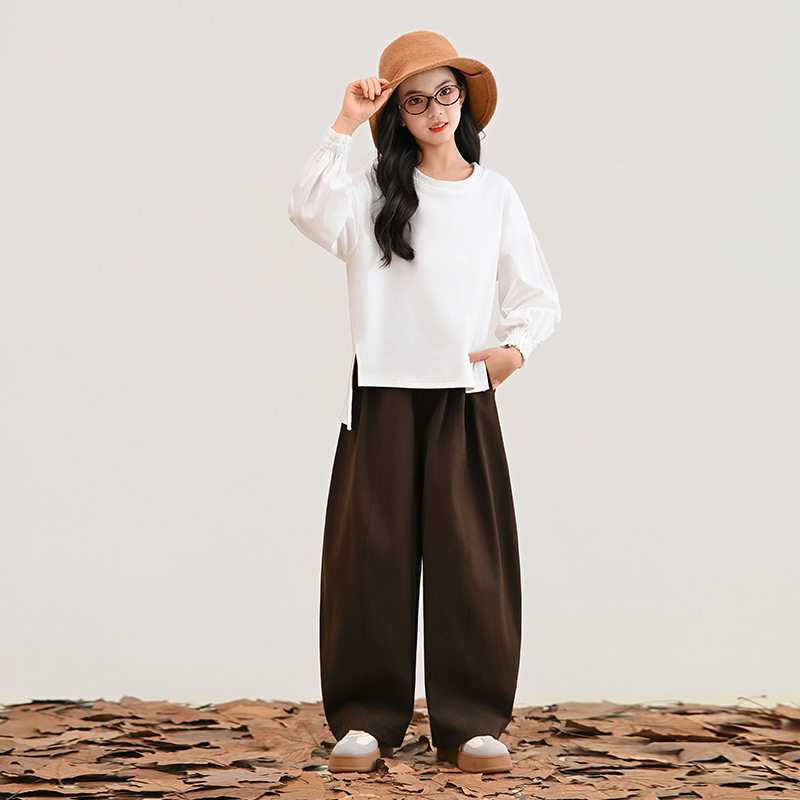 📚 女童休闲长裤秋冬新款弯刀直筒阔腿裤纯棉长袖前短后长卫衣
